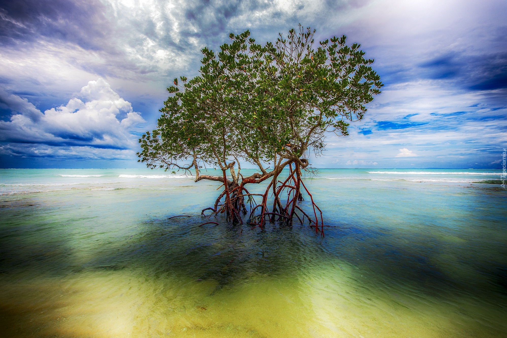 Edytor tapety: Morze, Drzewo