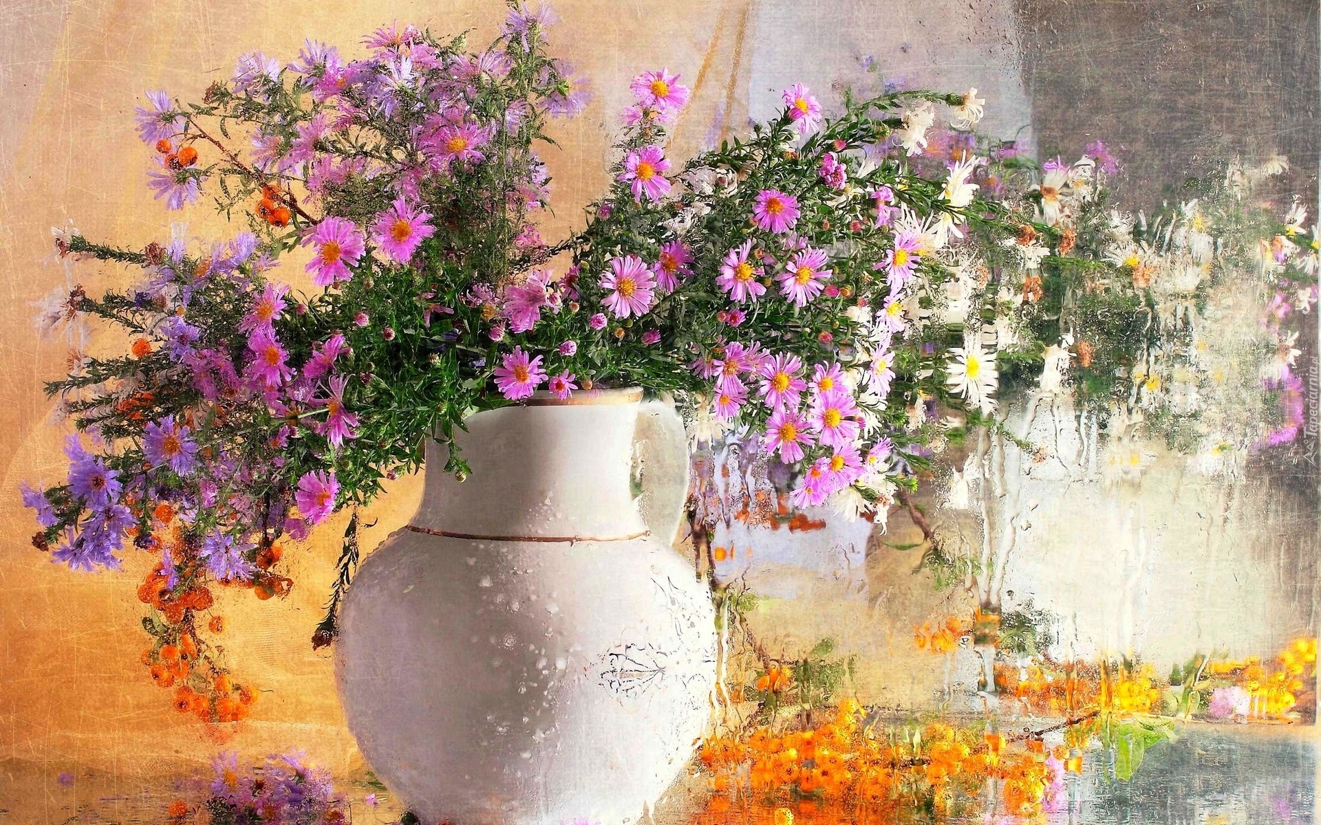 Edytor tapety: Kwiaty, Wazon, Szyba, Spływający, Deszcz