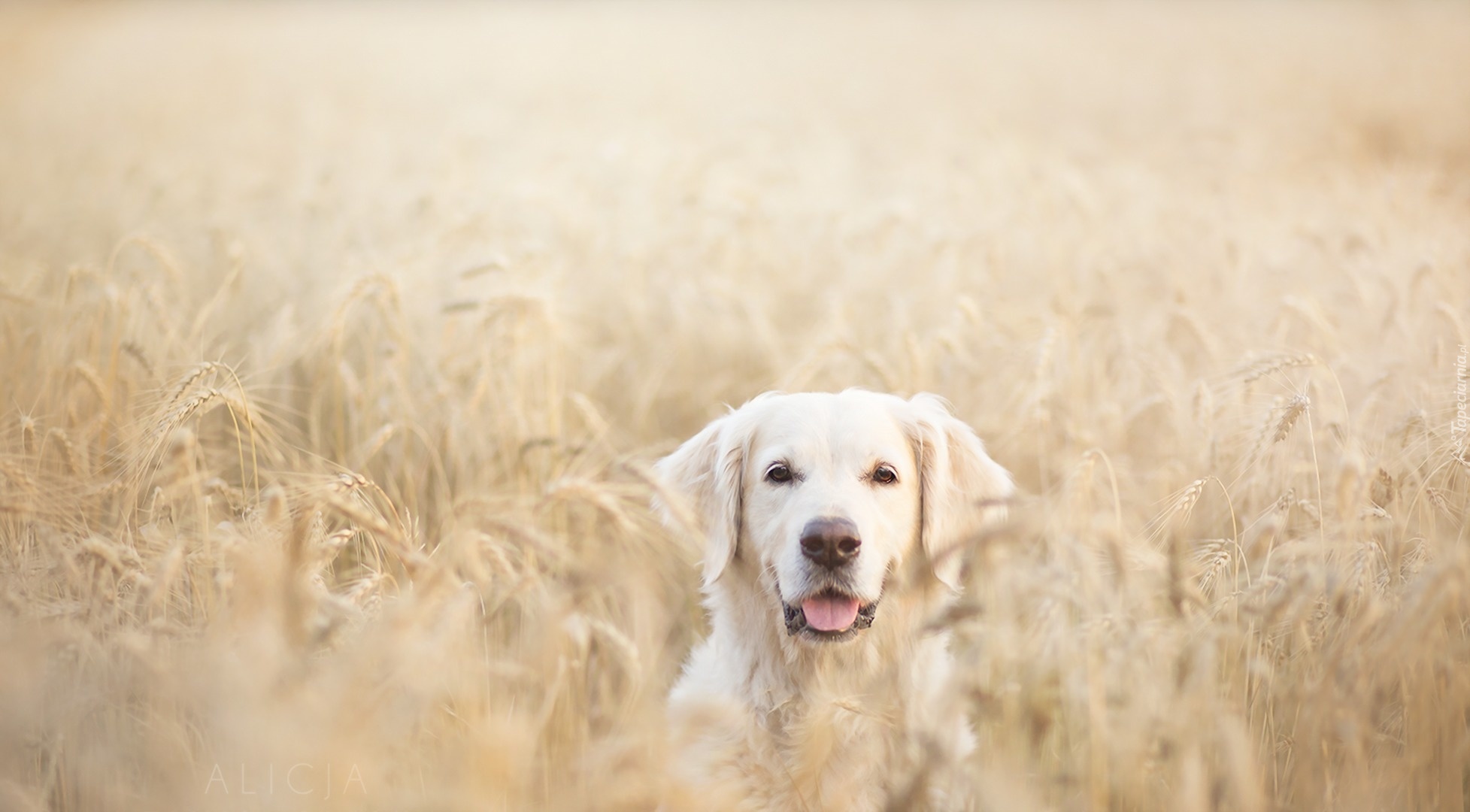 Edytor tapety: Pies, Golden, Retriever, Pole, Zboże, Lato
