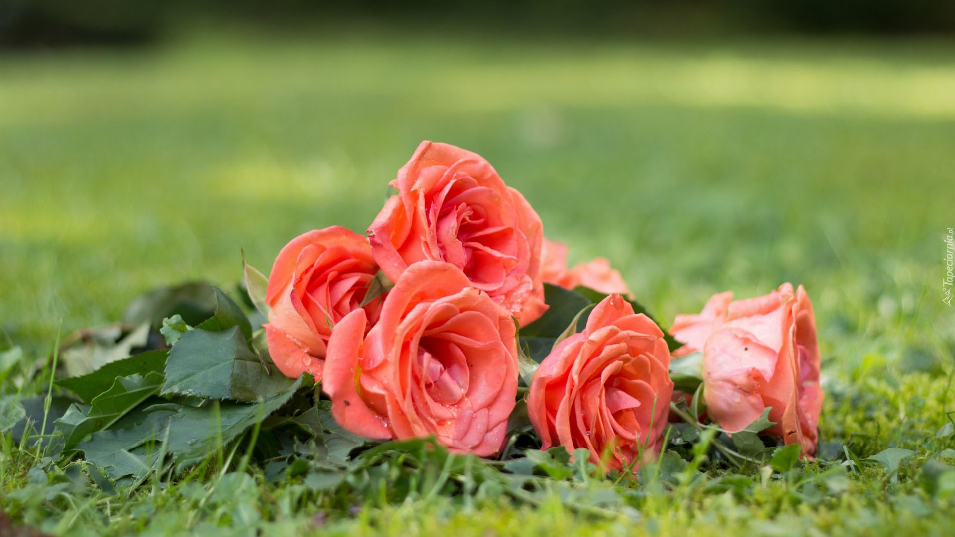 Edytor tapety: Bukiet, Czerwone, Róże, Trawa