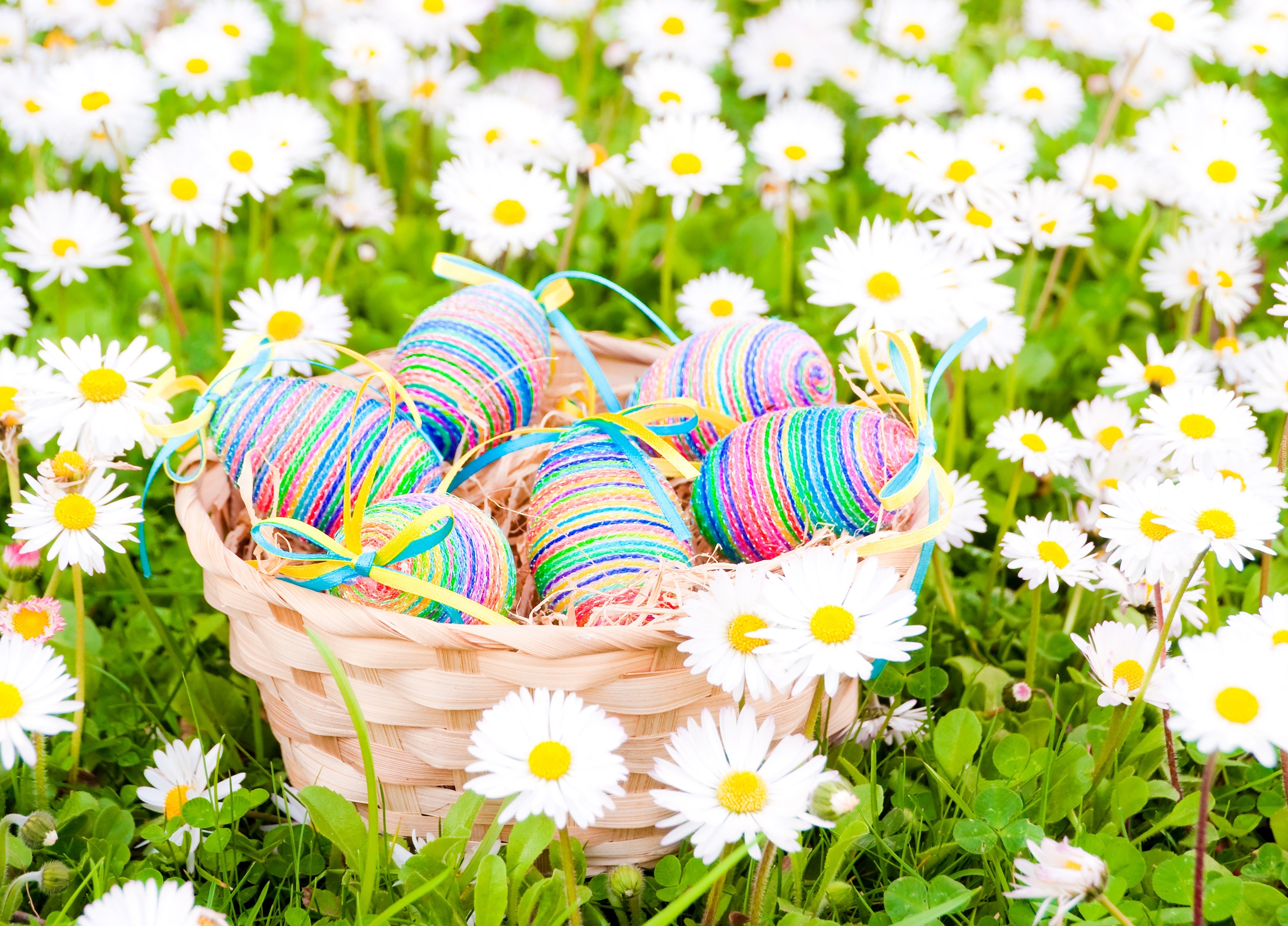 Edytor tapety: Wielkanoc, Koszyk, Pisanki, Stokrotki