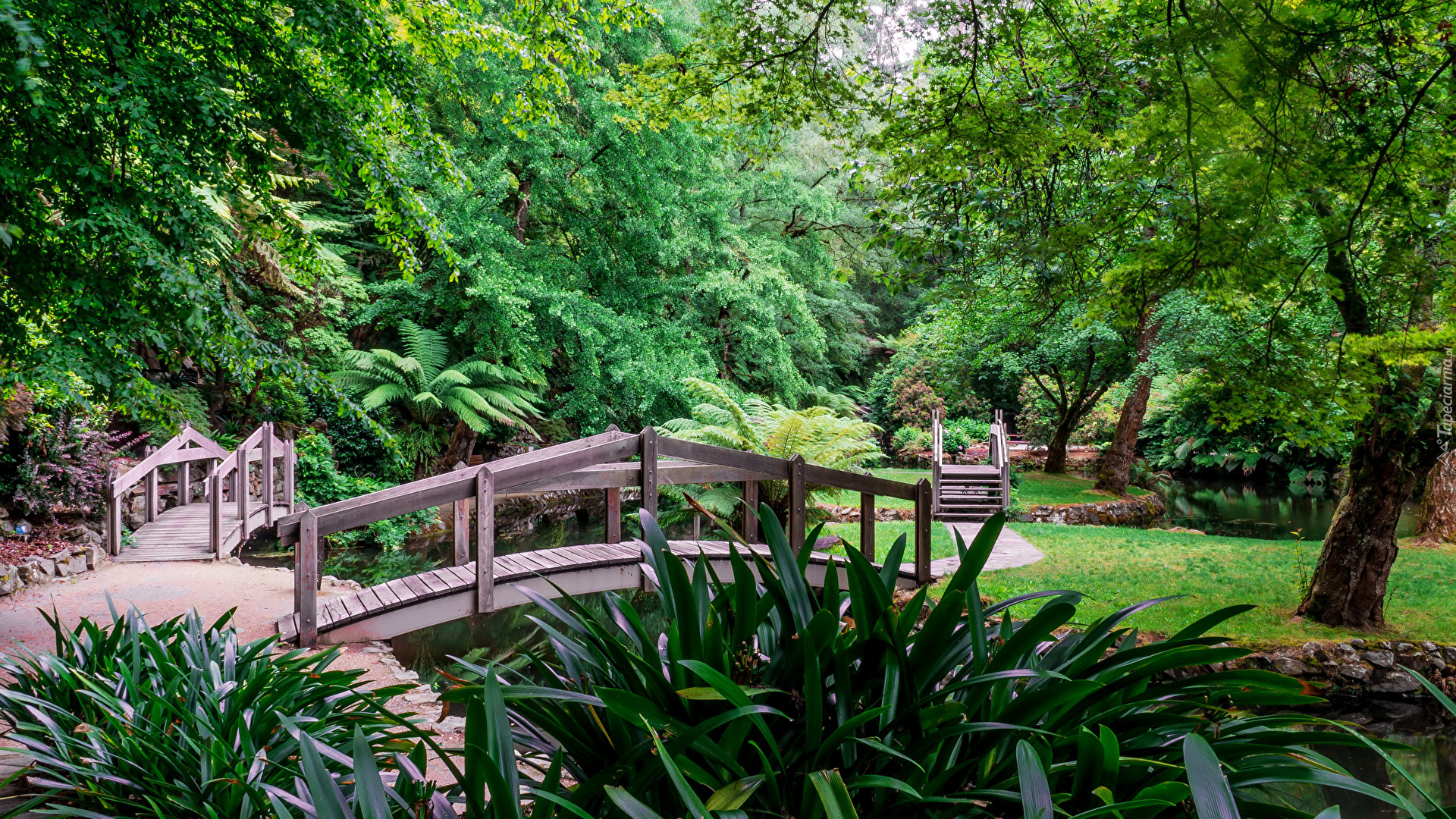 Edytor tapety: Zielony, Park, Rzeczka, Mostki, Wiosna