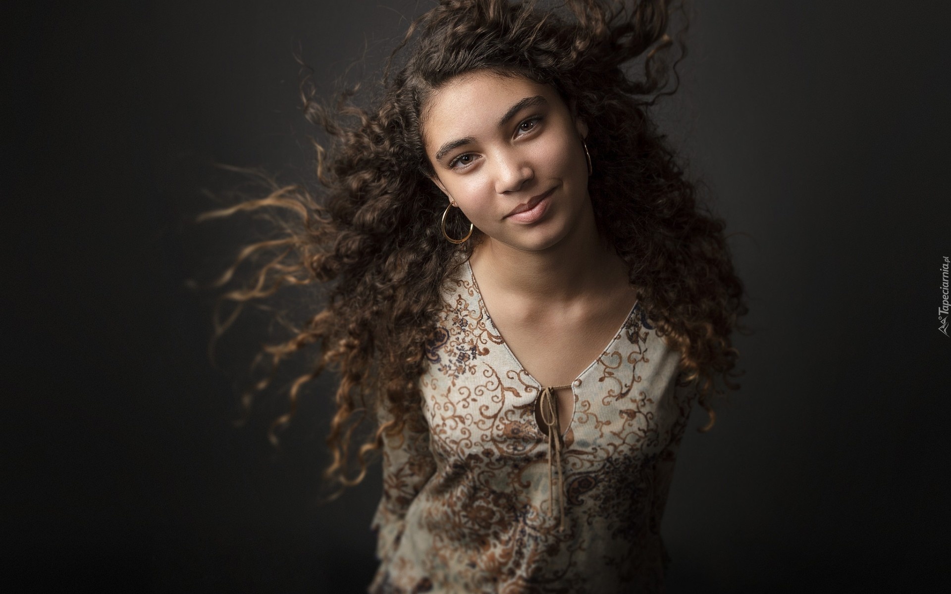 Edytor tapety: Brunetka, Dziewczyna, Kolczyki, Makijaż