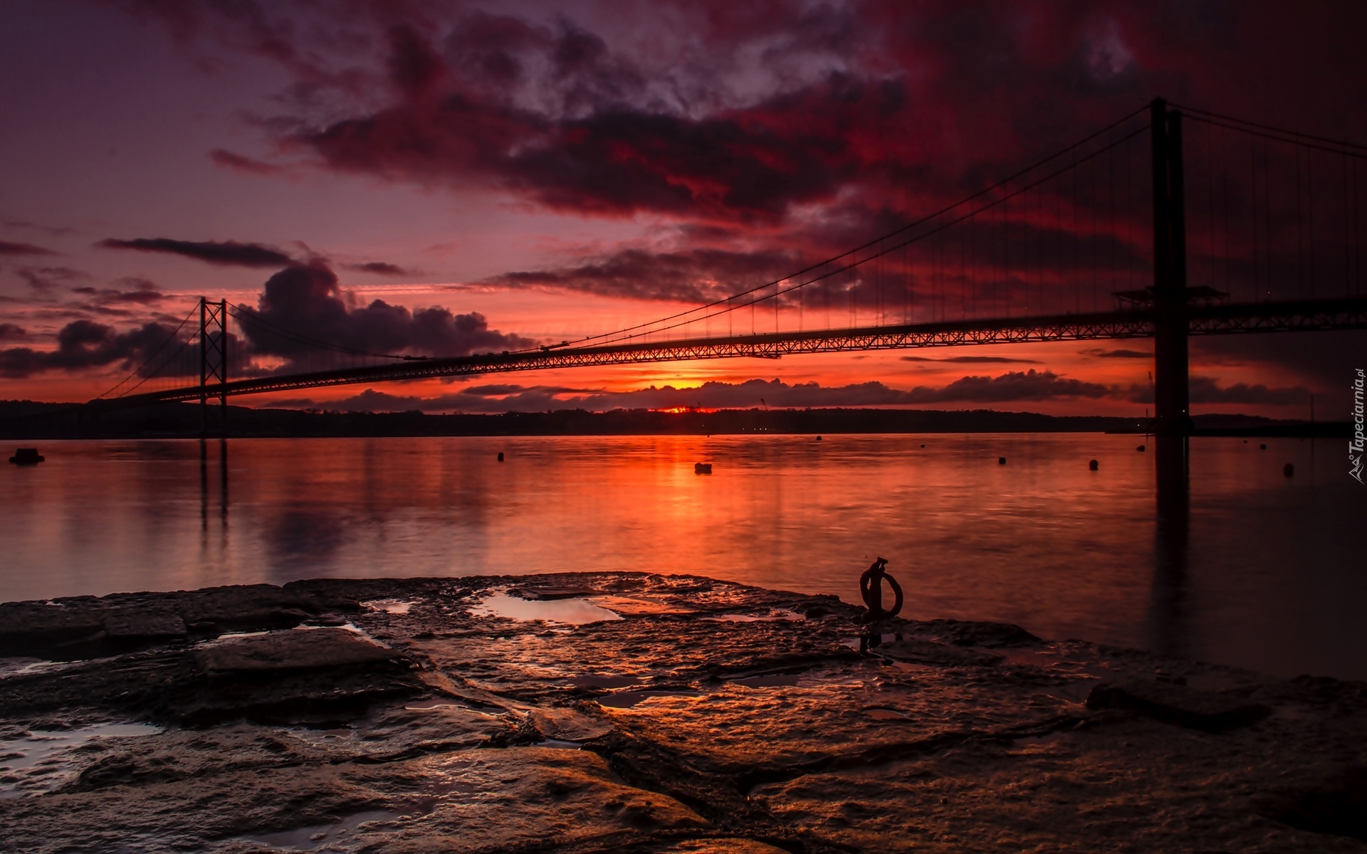 Edytor tapety: Zachód, Słońca, Rzeka, Most