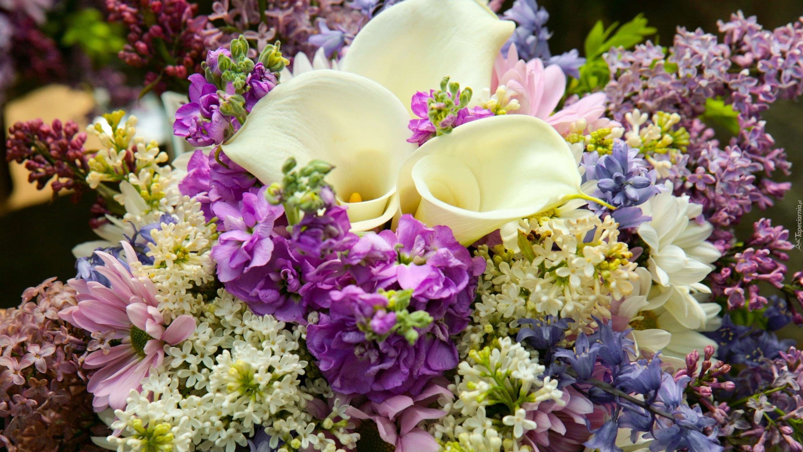 Edytor tapety: Bukiet kwiatów, Kalia, Bez, Gerbery