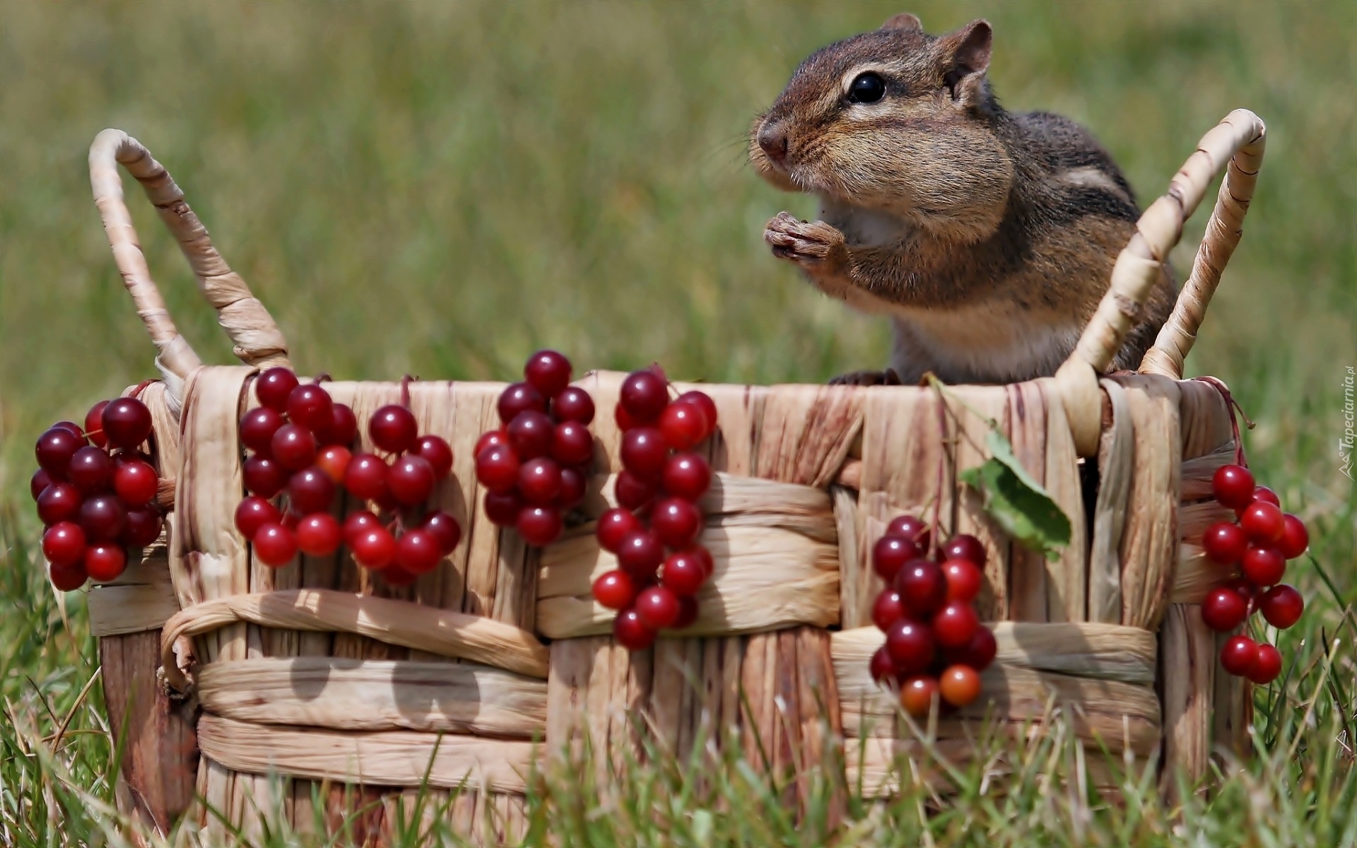 Edytor tapety: Chipmunk, Wiklinowy, Koszyk, Czerwone, Jagody, Kalina