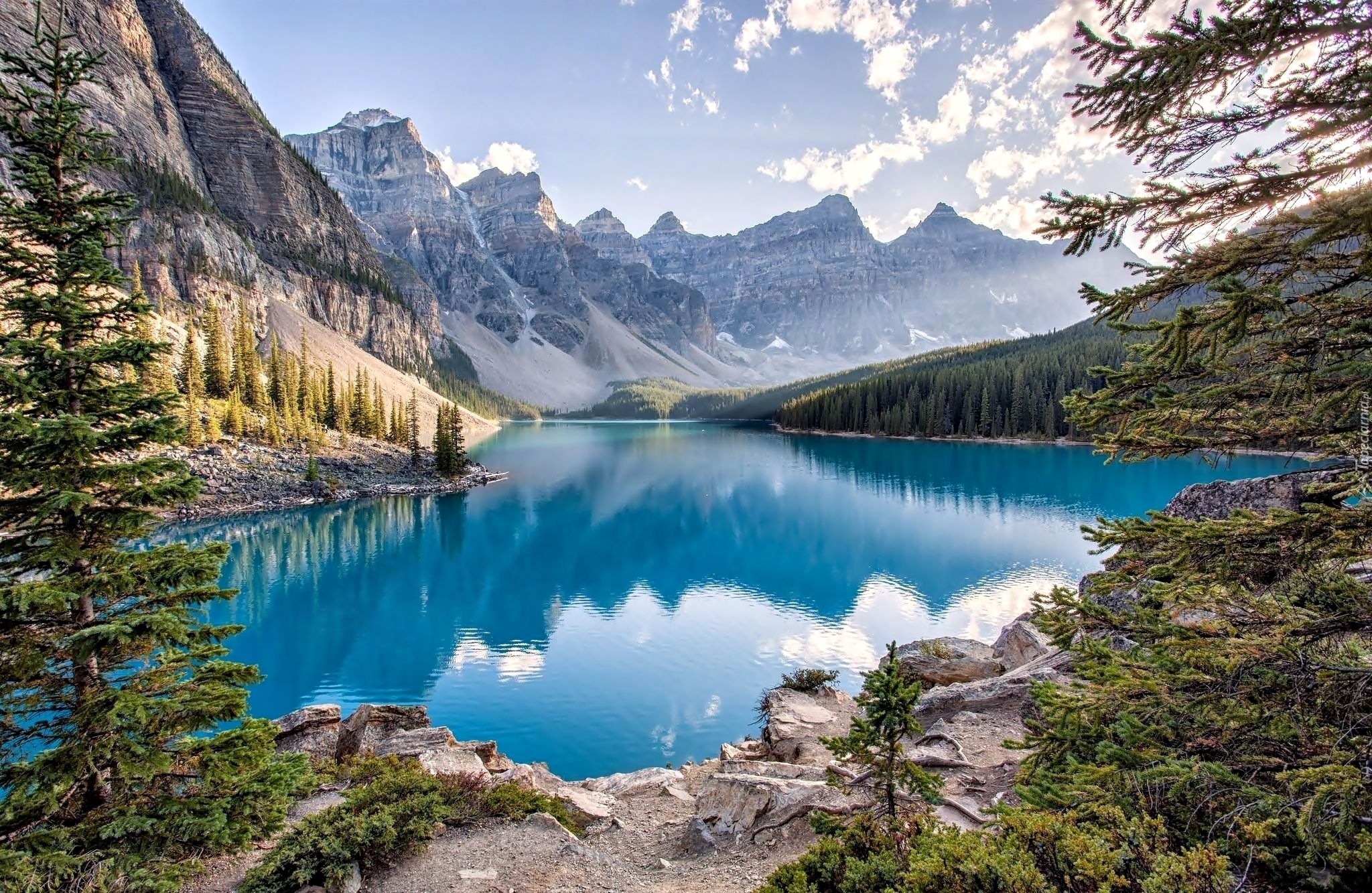 Edytor tapety: Kanada, Prowincja Alberta, Park Narodowy Banff, Góry, Jezioro Moraine, Las