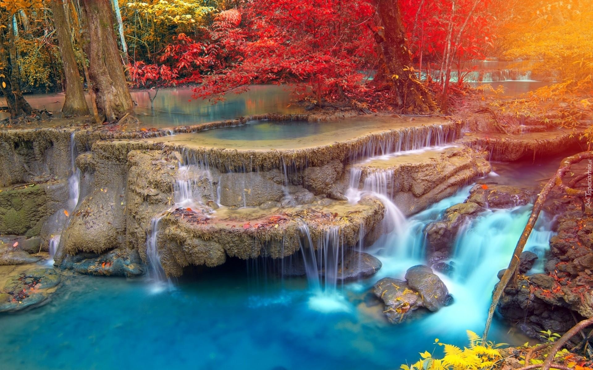 Edytor tapety: Tajlandia, Wodospad, Jesień, Tropikalna, Roślinność