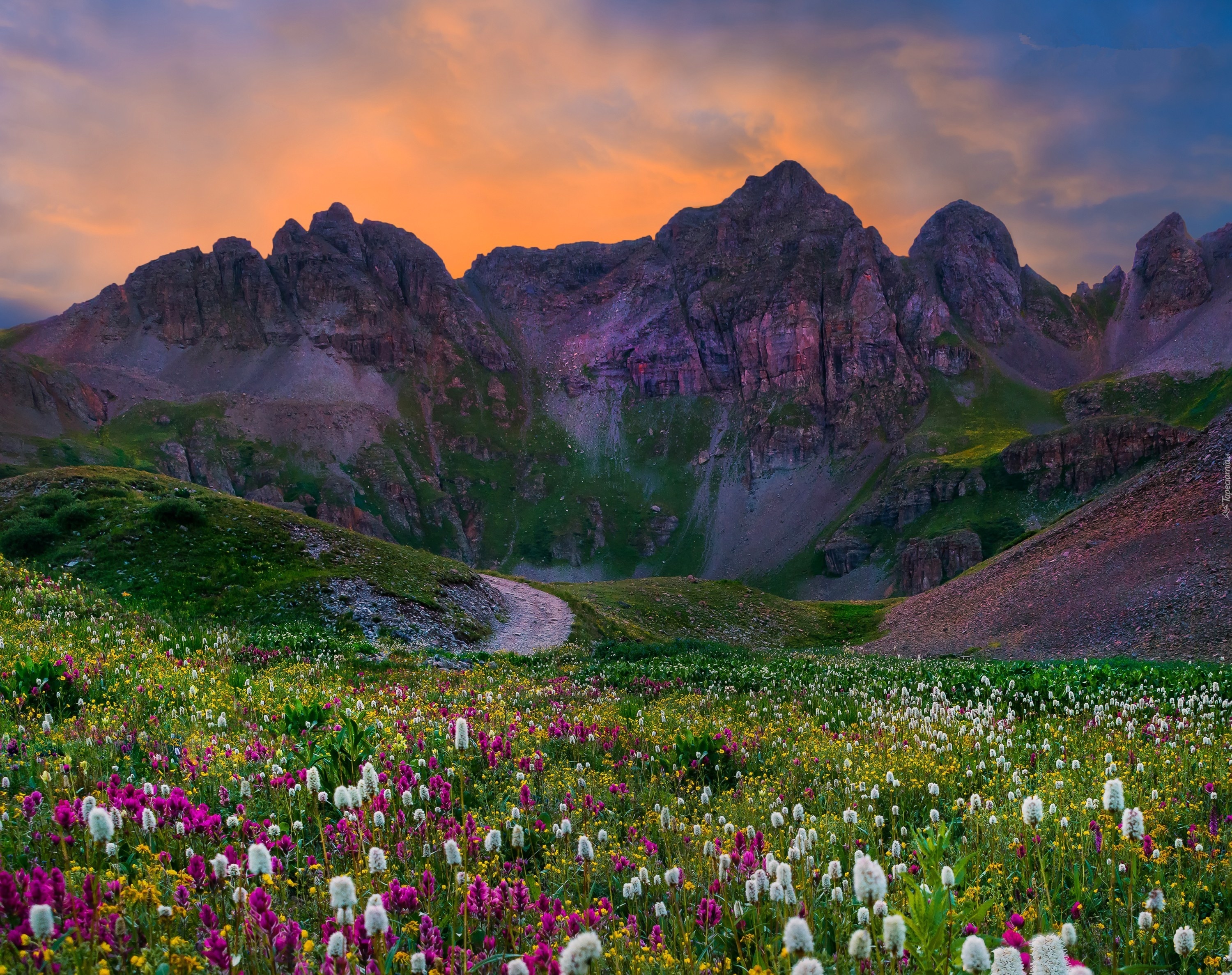 Edytor tapety: Góry, Droga, Łąka, Kwiaty
