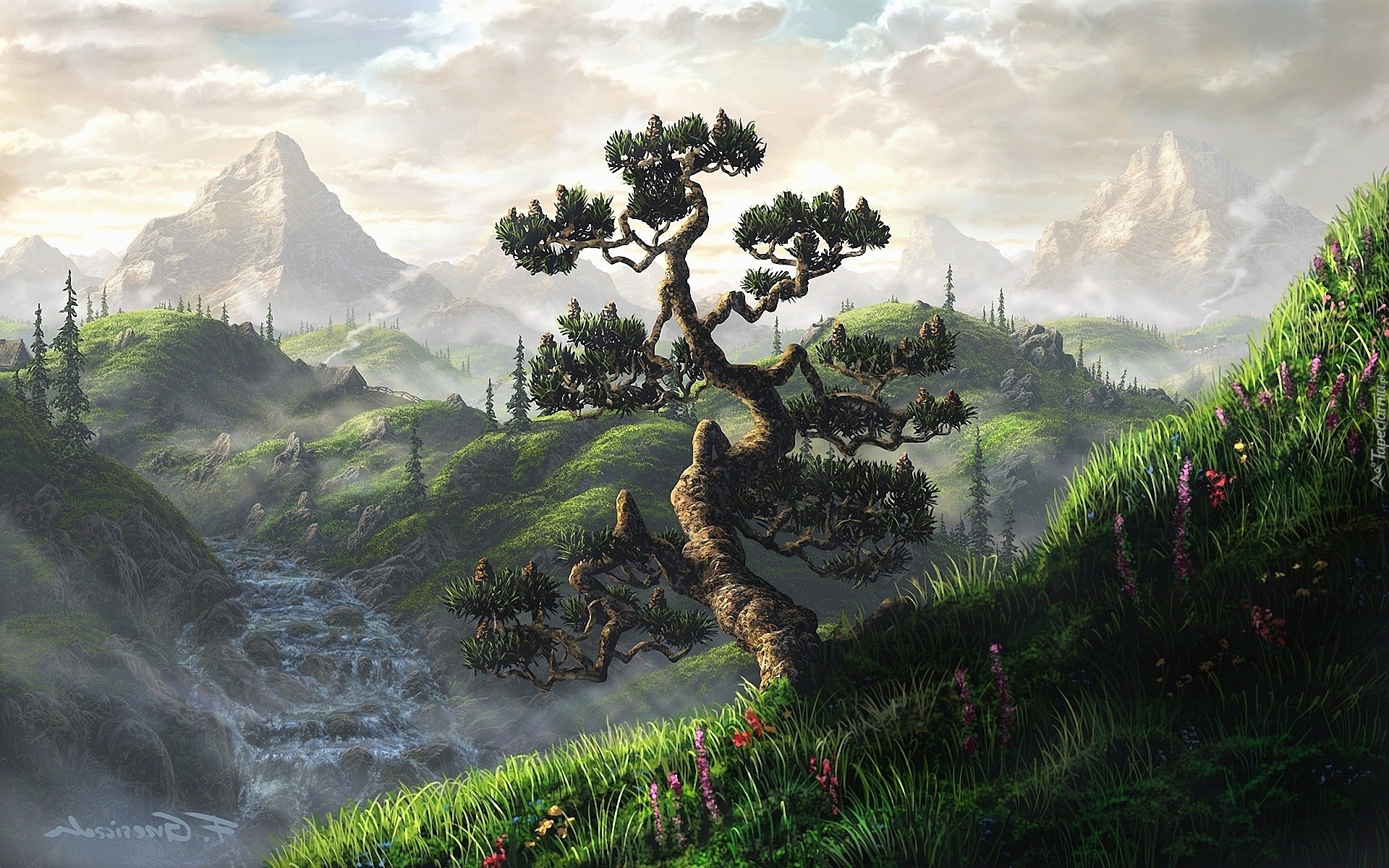 Edytor tapety: Góry, Drzewa, Chmury