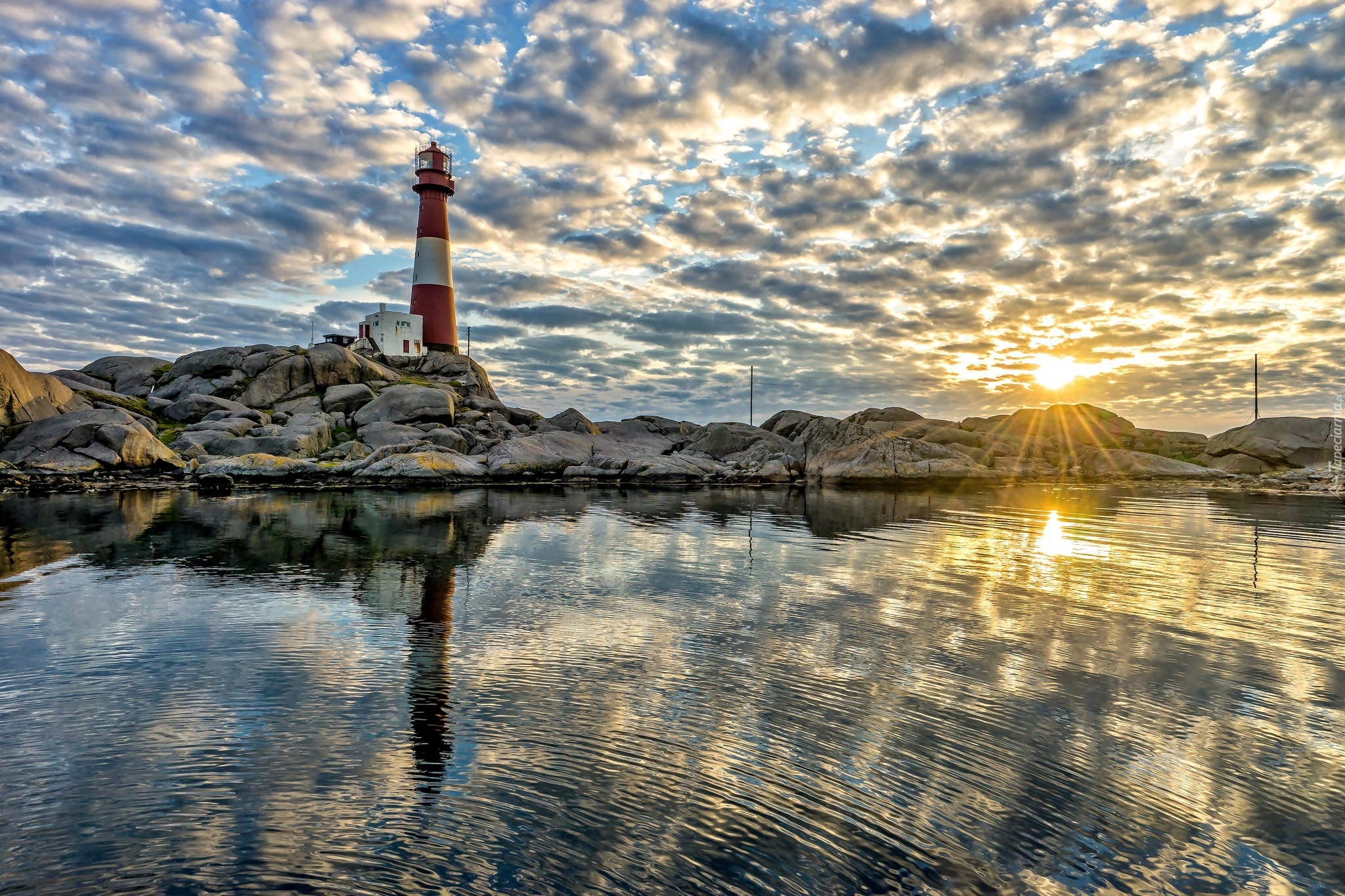 Edytor tapety: Morze, Wybrzeże, Chmury, Świt, Latarnia