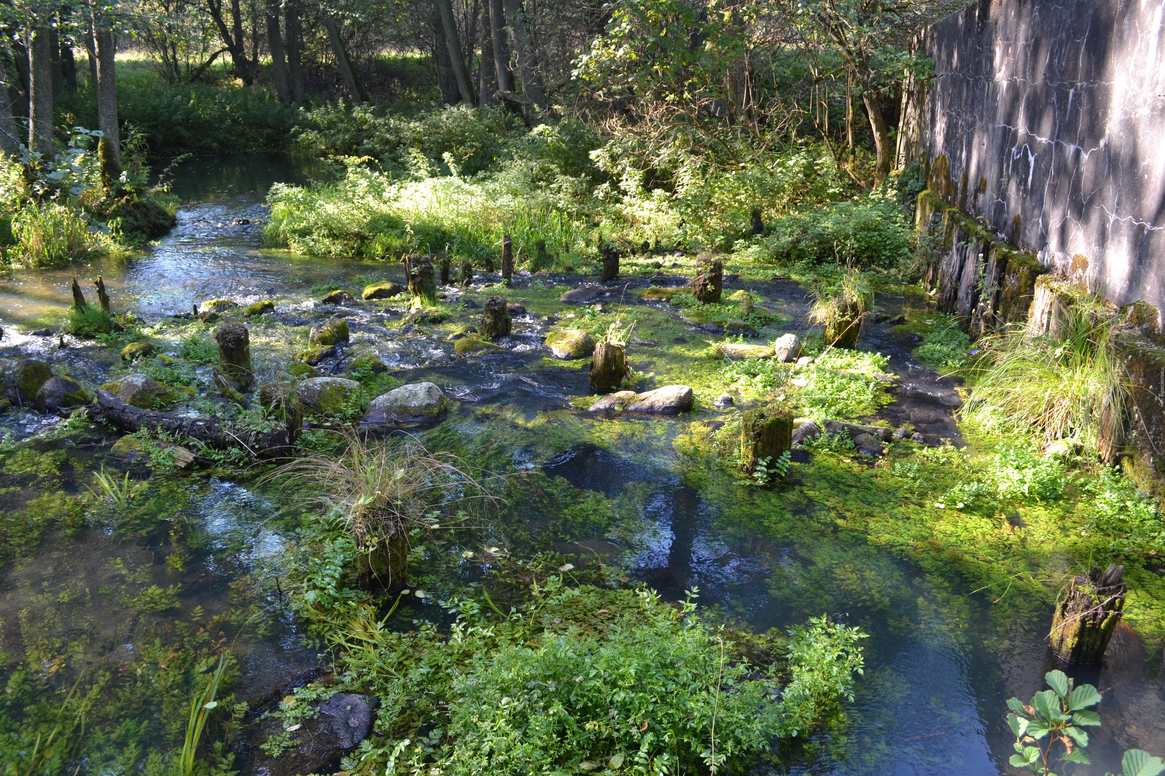 Edytor tapety: Rzeka, Drzewa, Mur