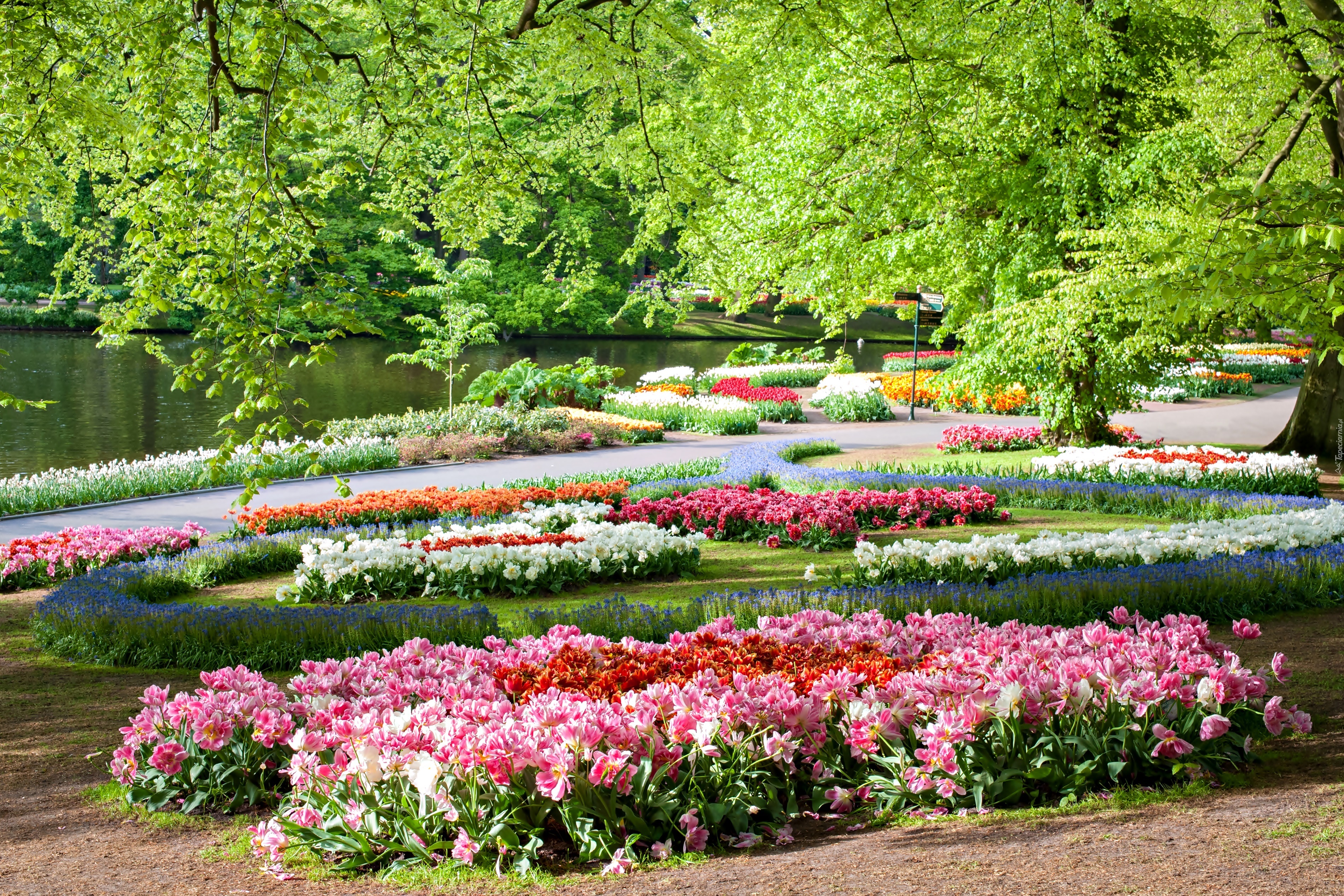 Edytor tapety: Holandia, Keukenhof, Park, Staw, Kwiaty, Wiosna