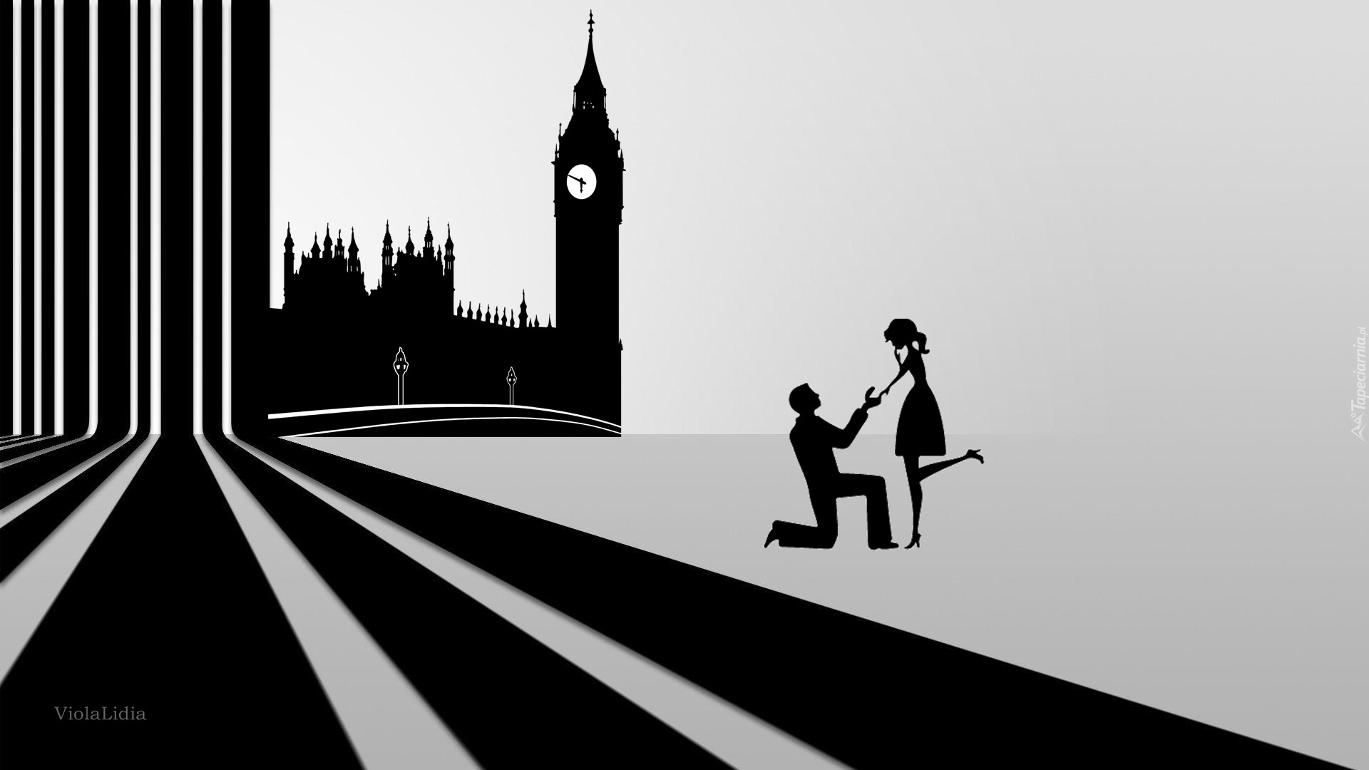 Edytor tapety: Grafika, Zakochani, Dziewczyna, Chłopak, Zegar