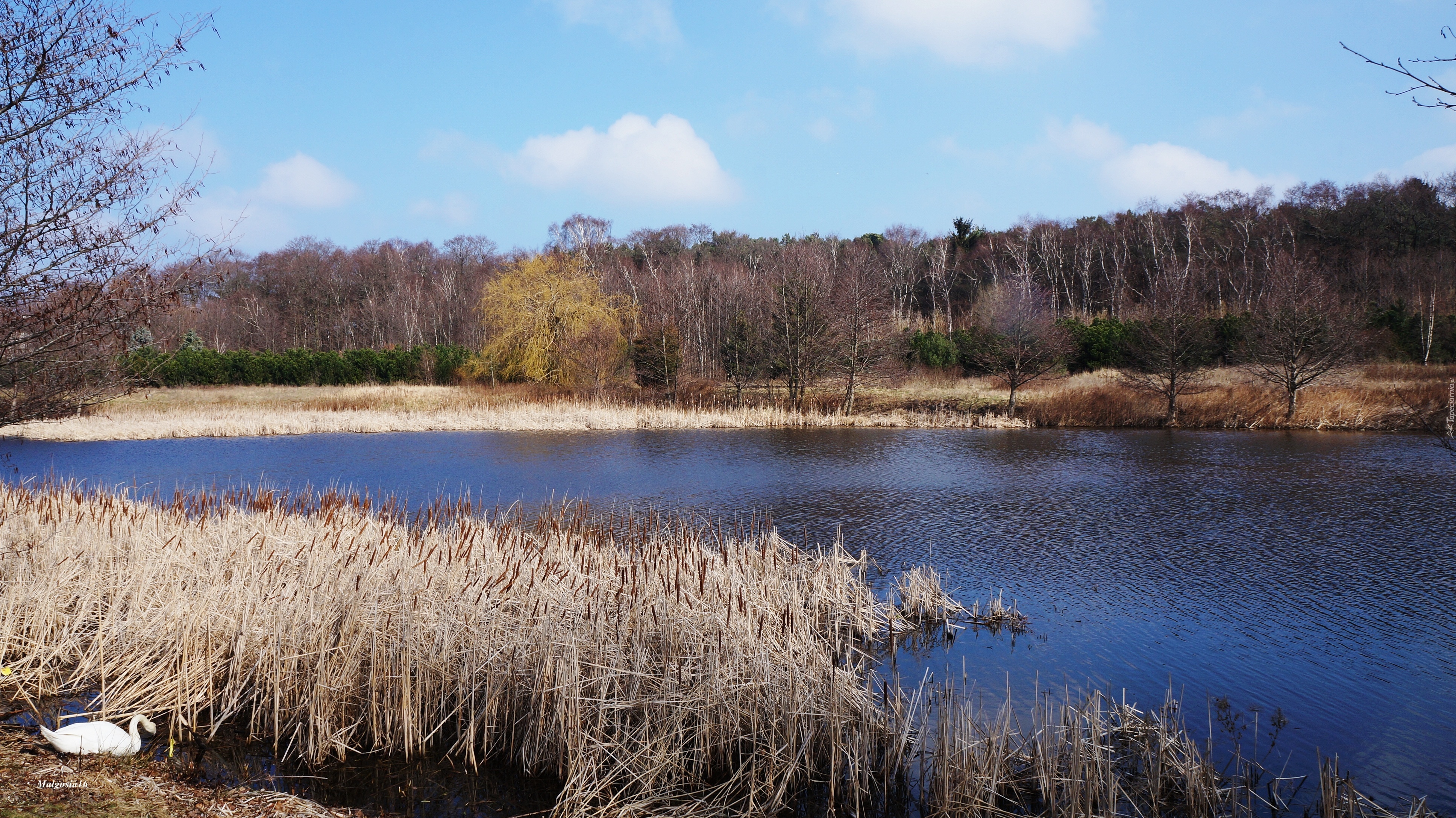 Edytor tapety: Jezioro, Trzcina, Łabędź