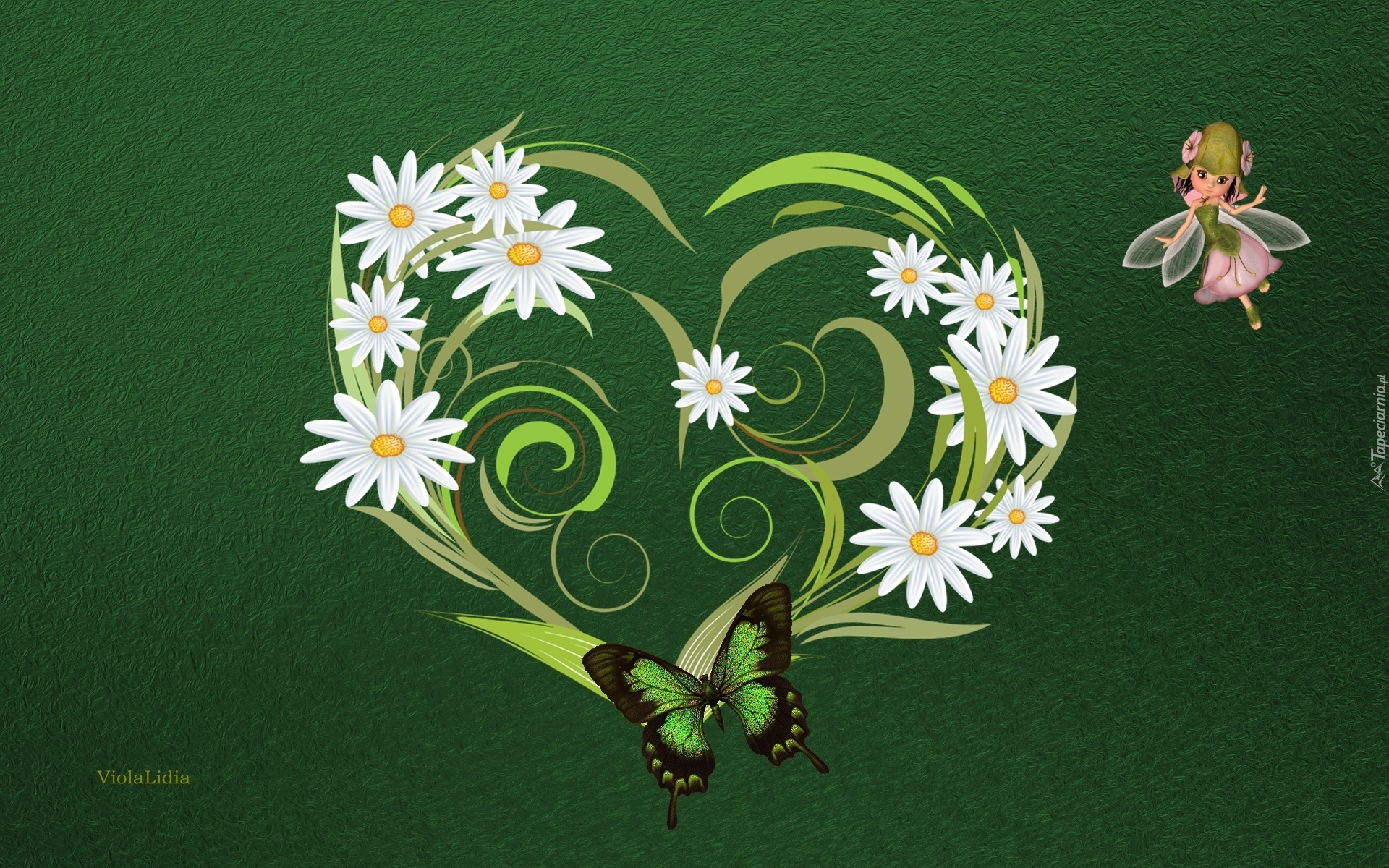 Edytor tapety: Grafika, Serce, Kwiaty, Motyl, Elf