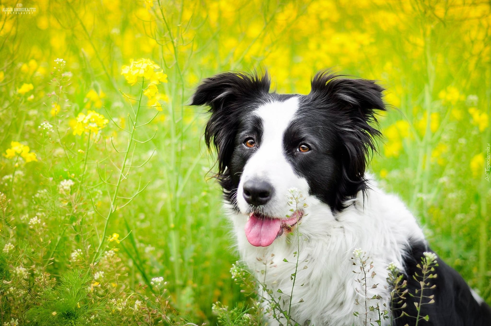 Edytor tapety: Pies, Border collie, Łąka, Rzepak