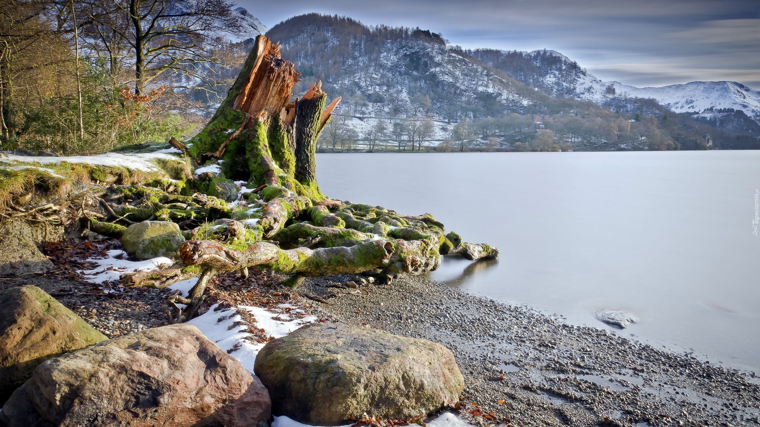 Edytor tapety: Zima, Jezioro, Złamane, Drzewo