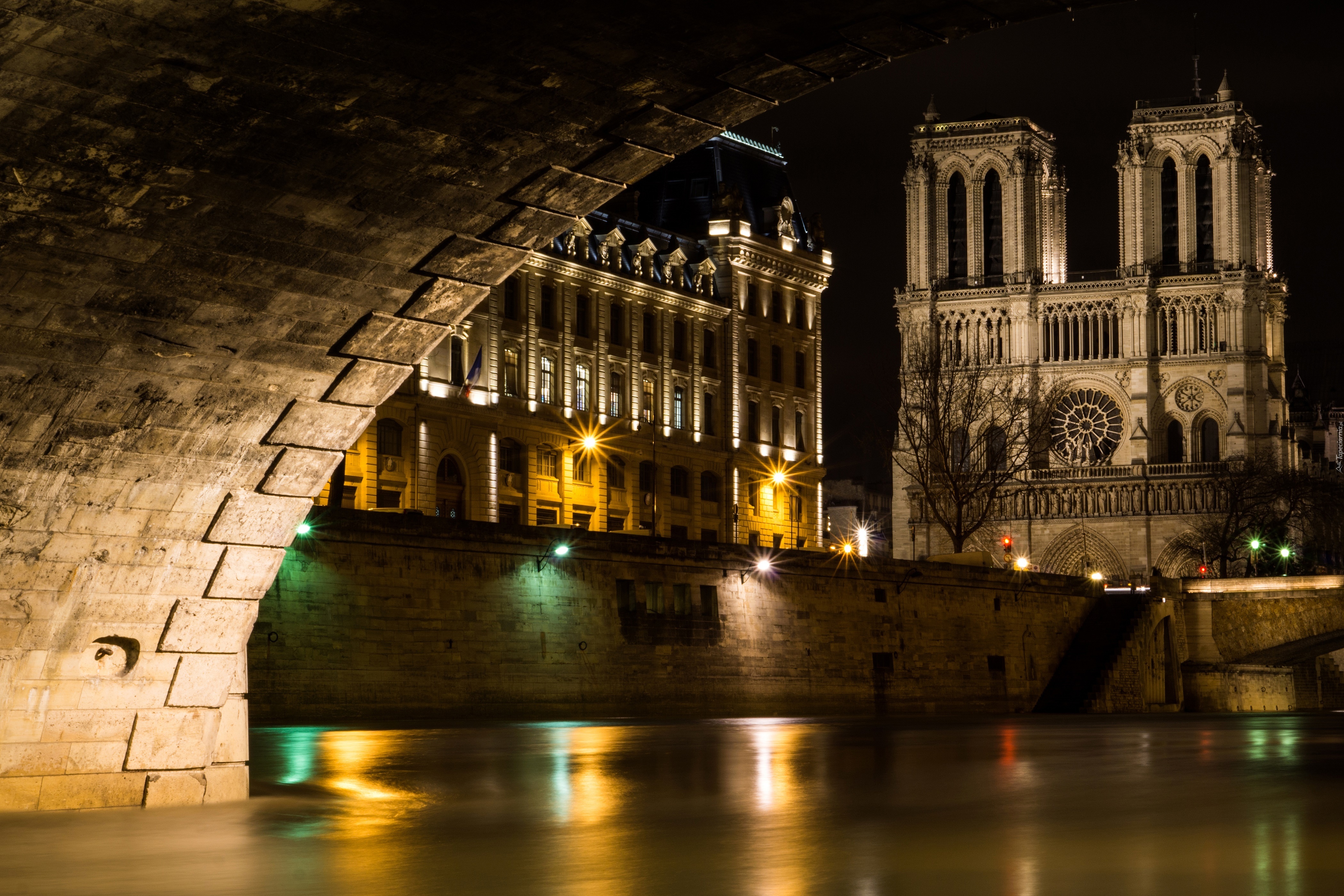 Edytor tapety: Paryż, Katedra, Notre Dame, Most, Rzeka, Noc