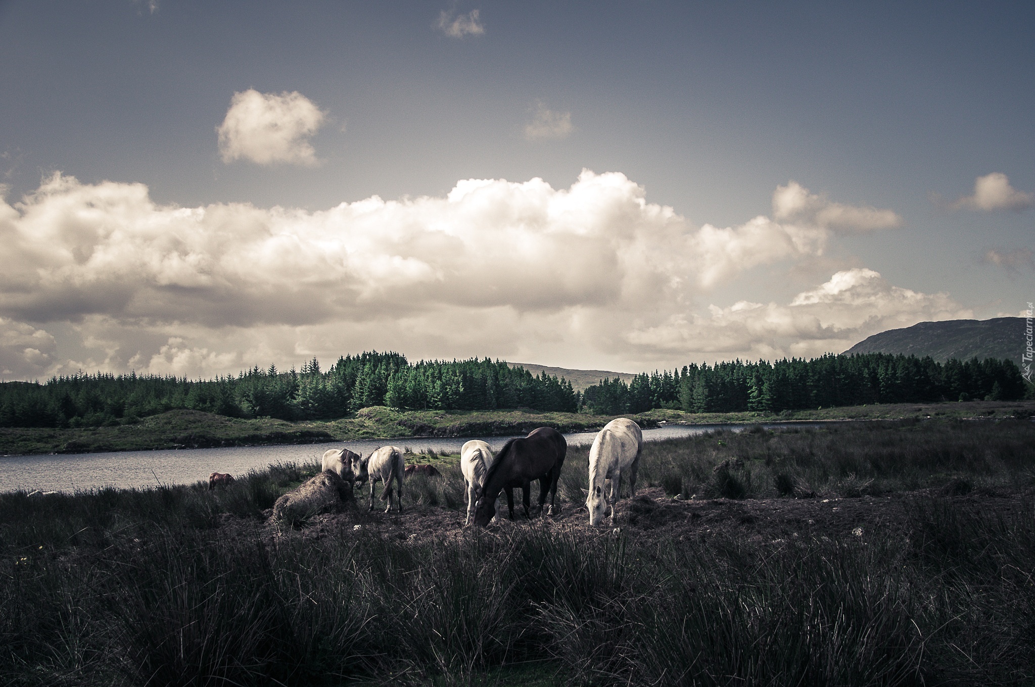 Edytor tapety: Konie, Pastwisko, Drzewa