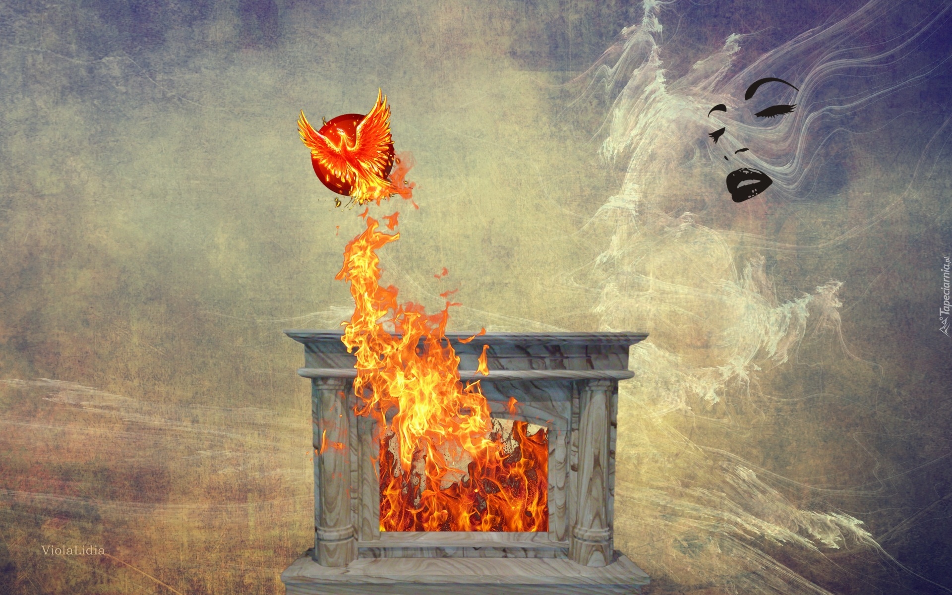 Edytor tapety: Grafika, Kominek, Ogień, Feniks