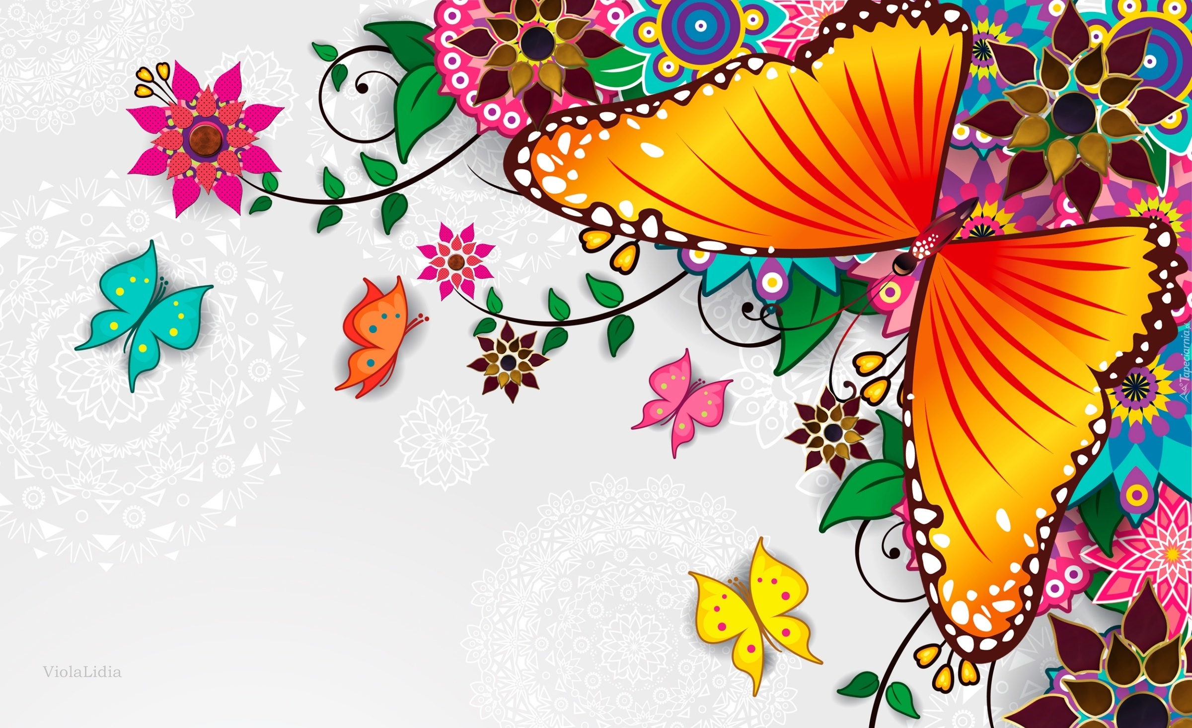 Edytor tapety: Grafika, Motyle, Kwiaty