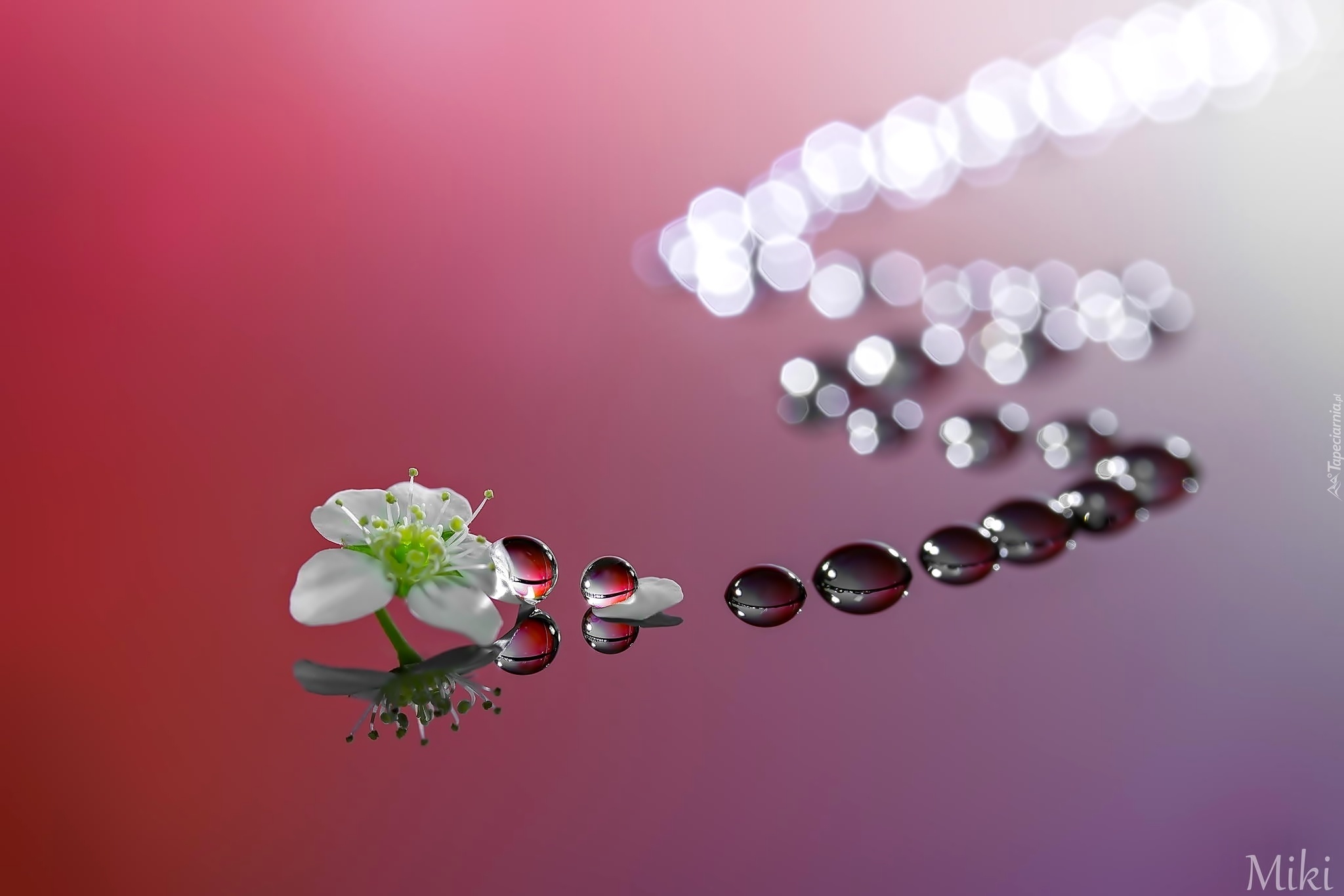 Edytor tapety: Kwiat, Krople, Makro, Odbicie