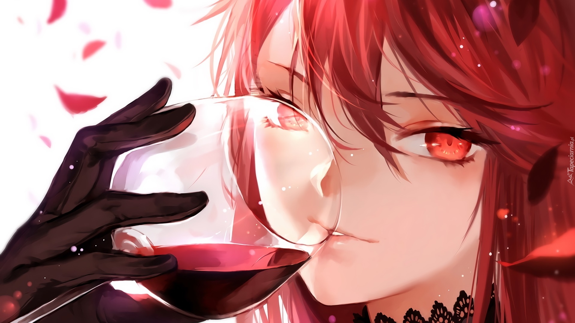 Edytor tapety: Kobieta, Kieliszek, Wino, Manga, Anime