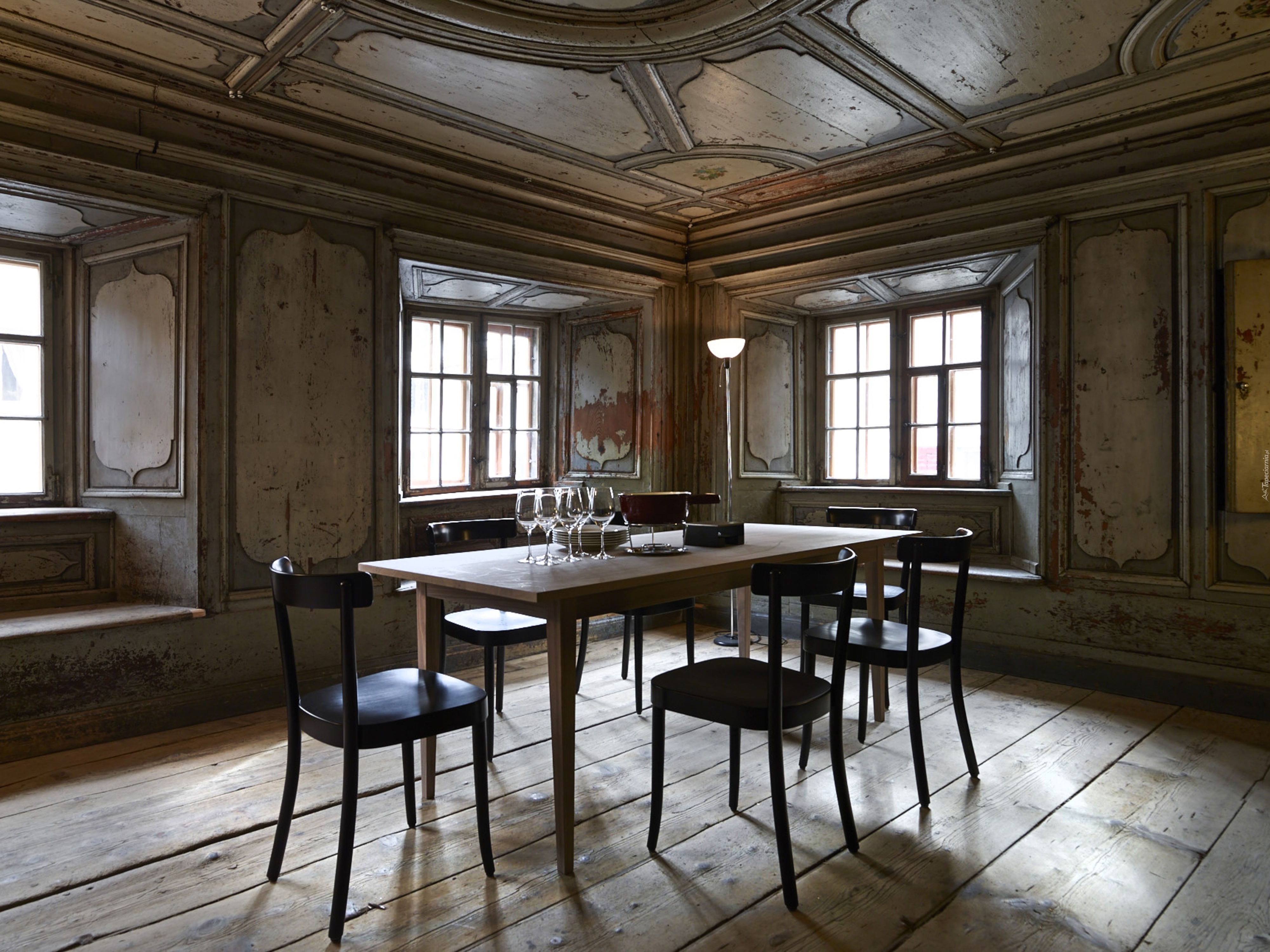 Edytor tapety: Zaniedbane, Pomieszczenie, Stół, Krzesła