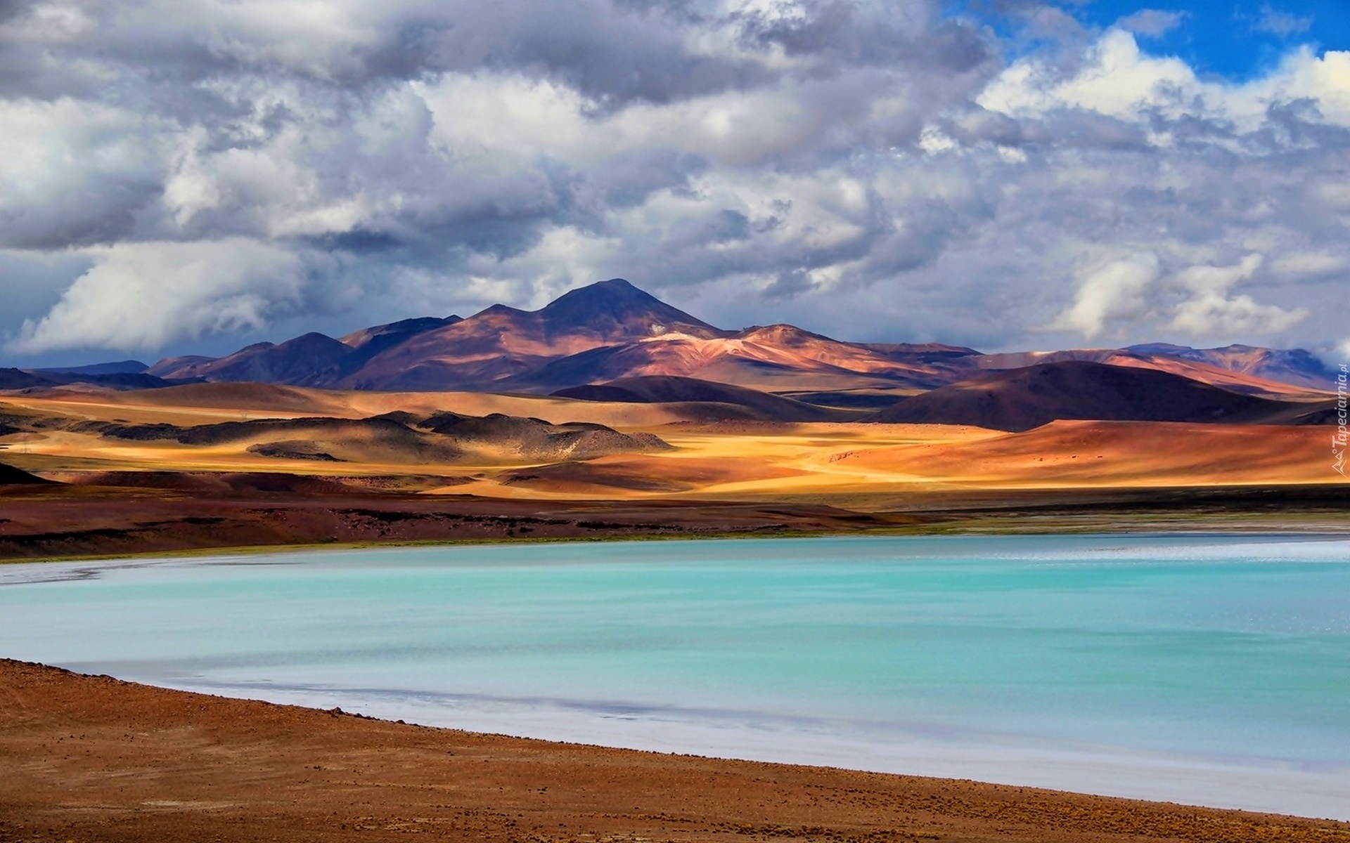 Edytor tapety: Jezioro, Pustynia, Góry, Chmury
