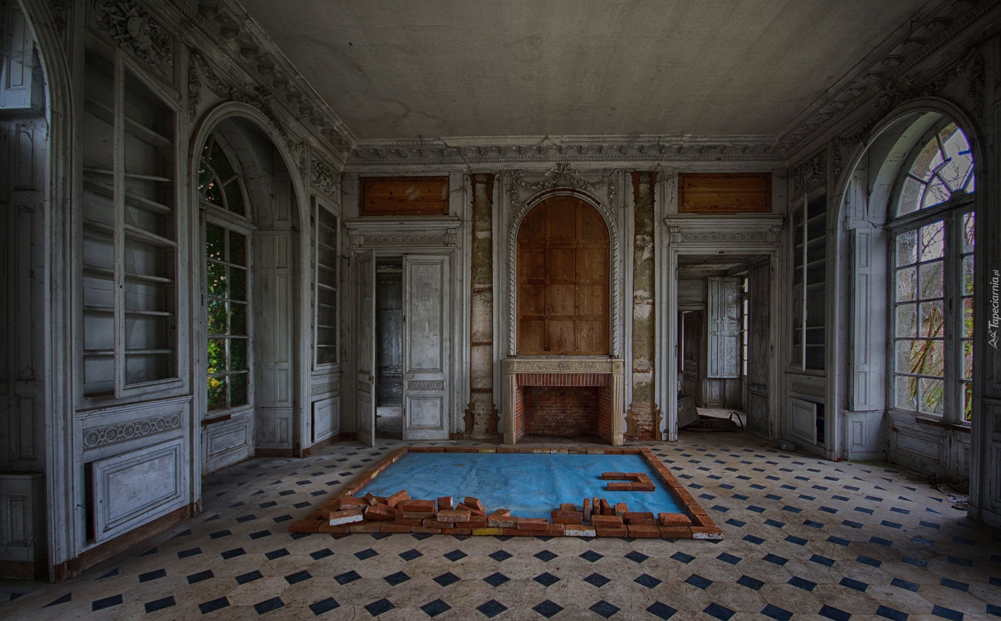 Edytor tapety: Zaniedbany, Pokój, Kominek