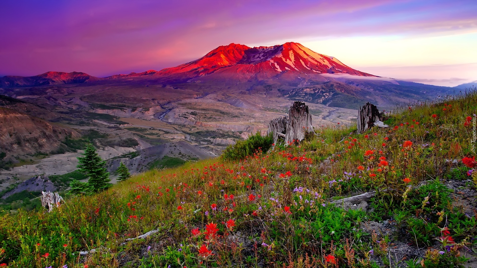 Edytor tapety: Góry, Łąka, Zachód, Słońca