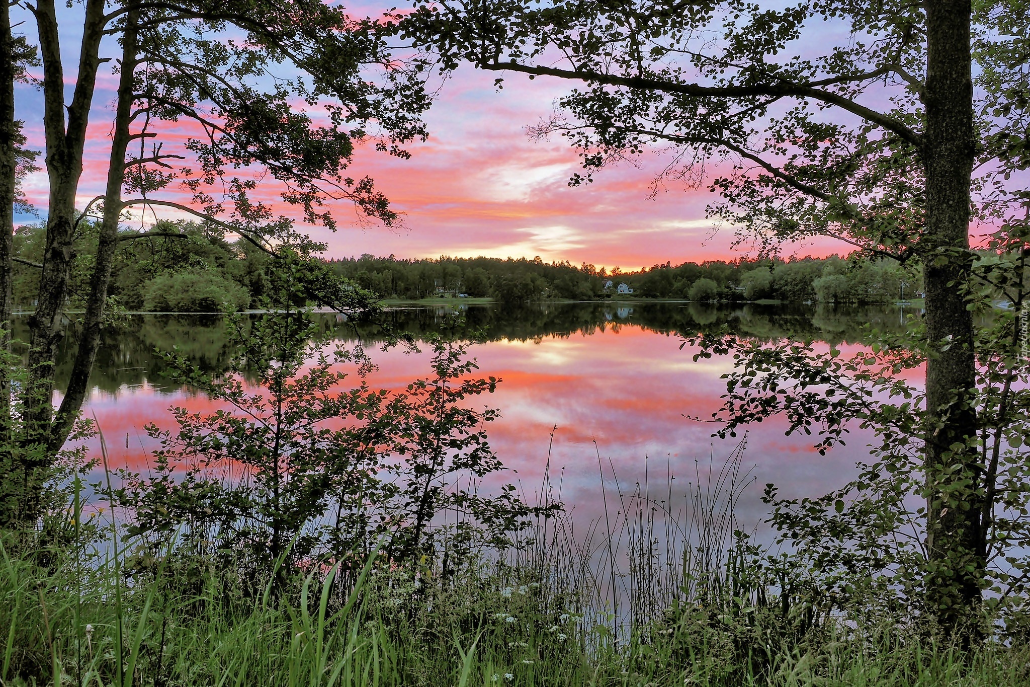Edytor tapety: Jezioro, Las, Świt, Nacka, Szwecja