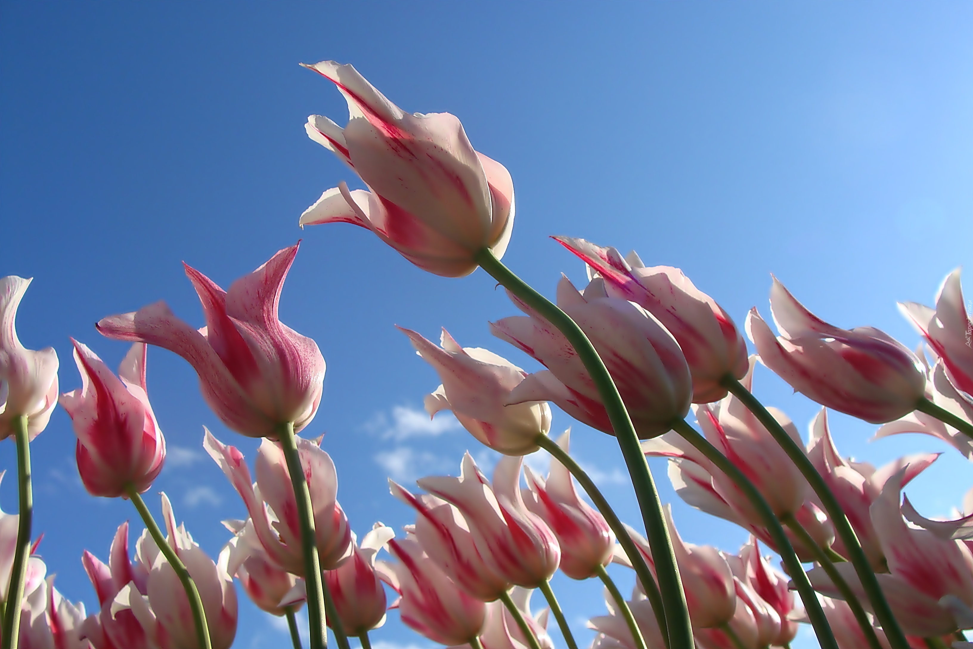 Edytor tapety: Biało, Różowe, Tulipany, Błękitne, Niebo