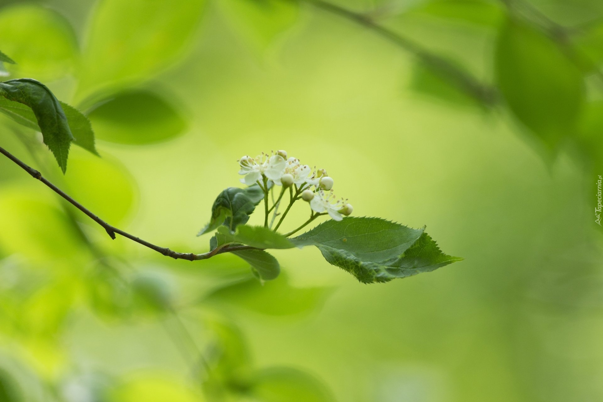 Edytor tapety: Zieleń, Gałązka, Kwiat, Biały, Makro