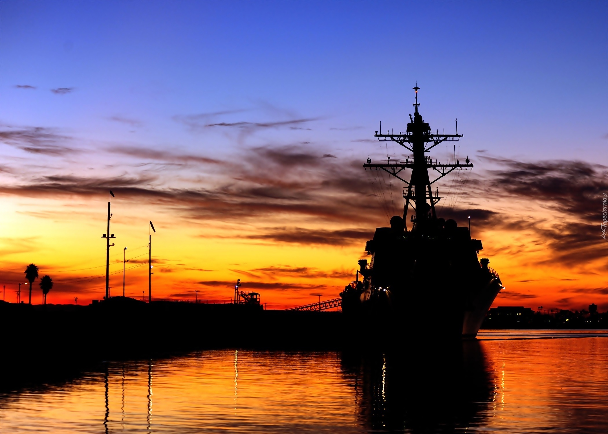 Edytor tapety: Morze, Statek, Zachód słońca