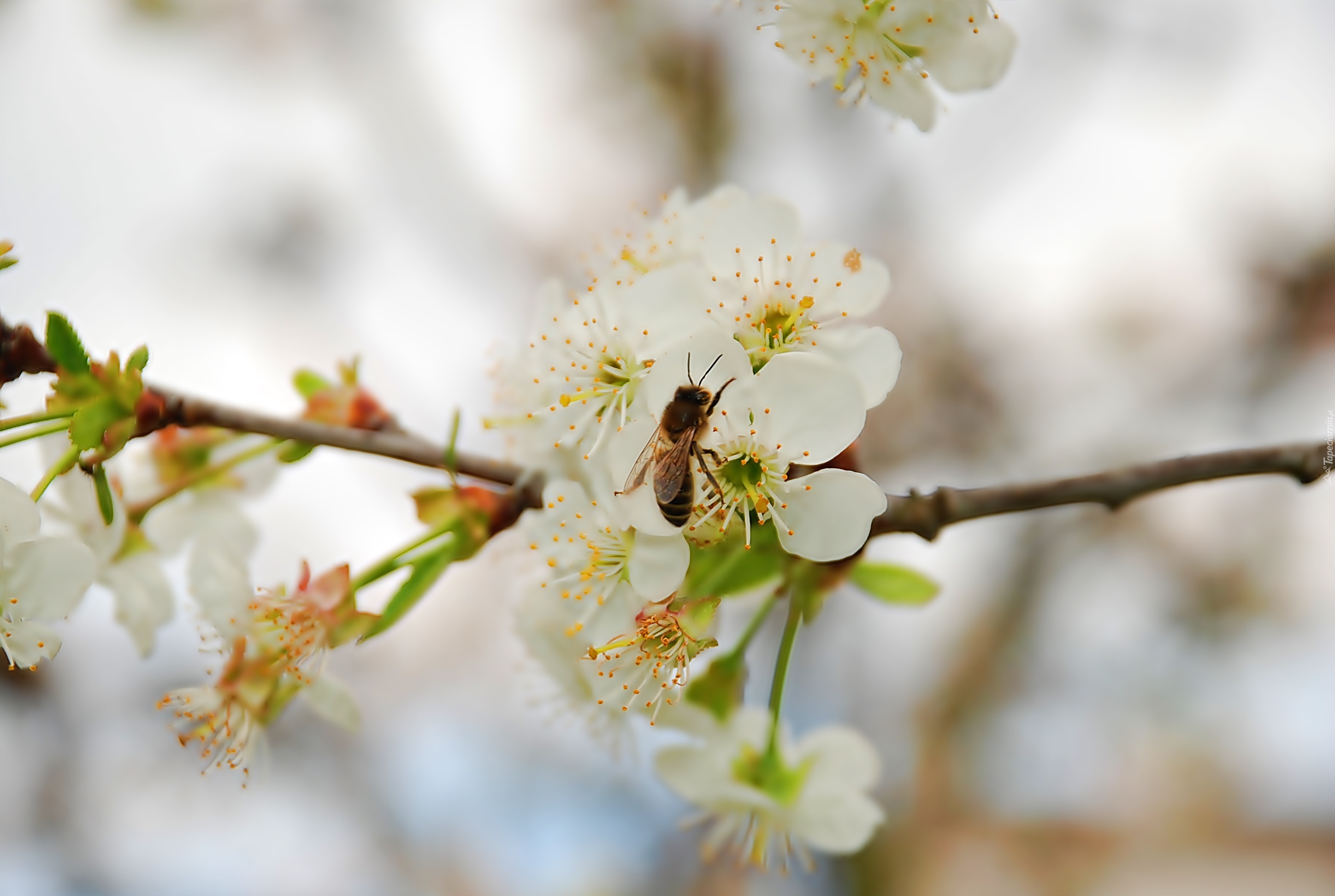 Edytor tapety: Kwitnąca, Wiśnia, Pszczoła