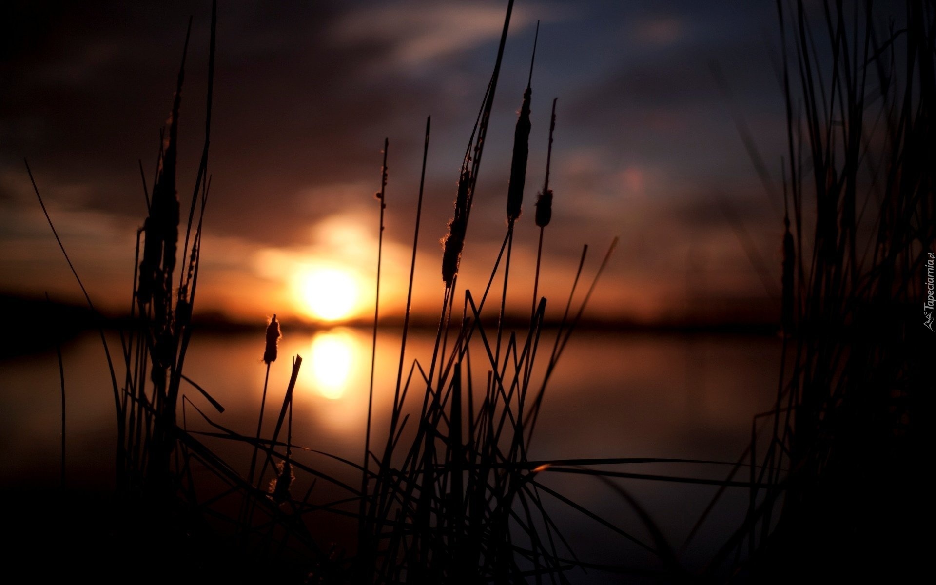 Edytor tapety: Jezioro, Zachód Słońca, Trzciny