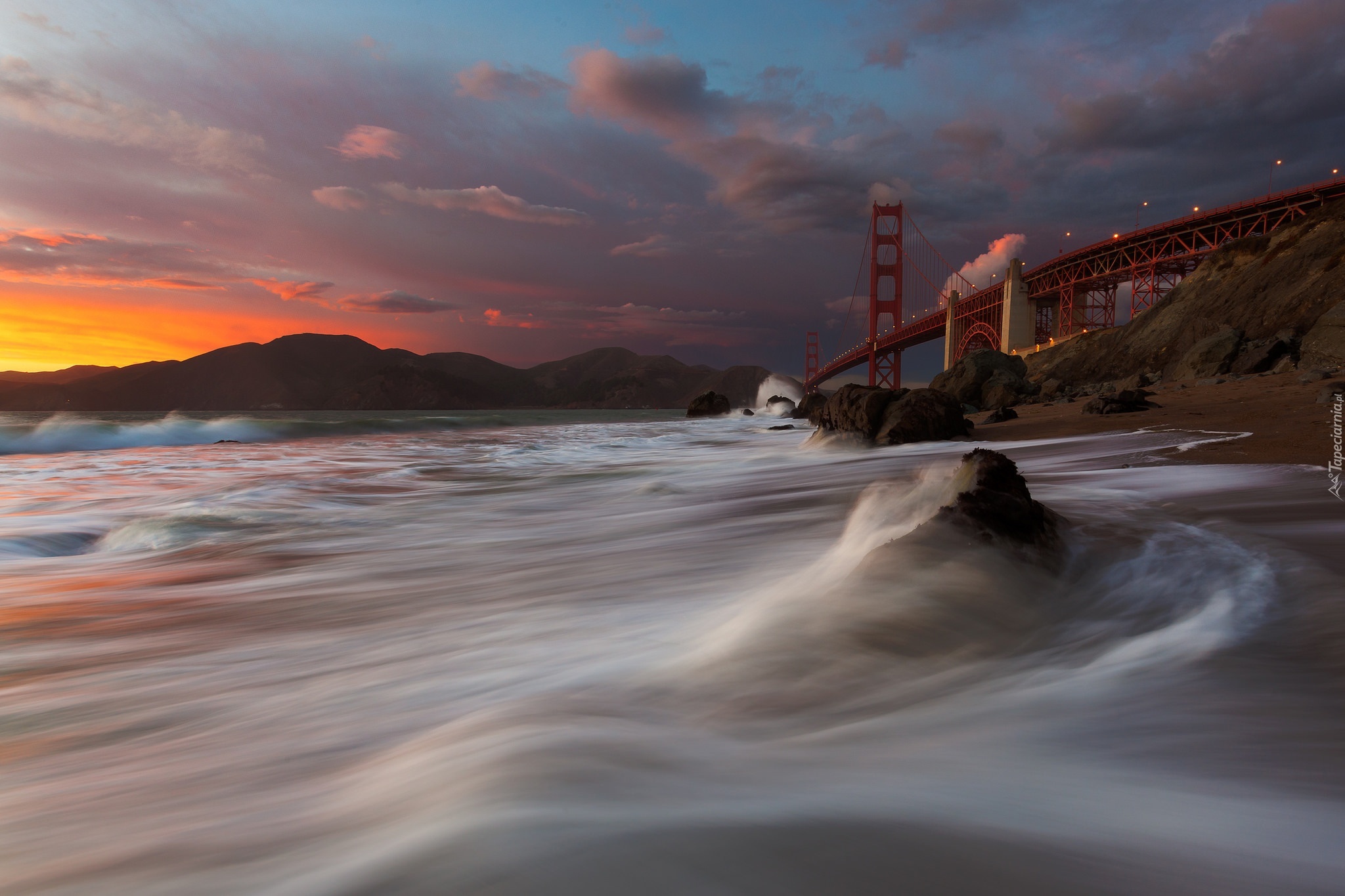 Edytor tapety: Most, Golden Gate, Morze, Zachód, Słońca, San Francisco