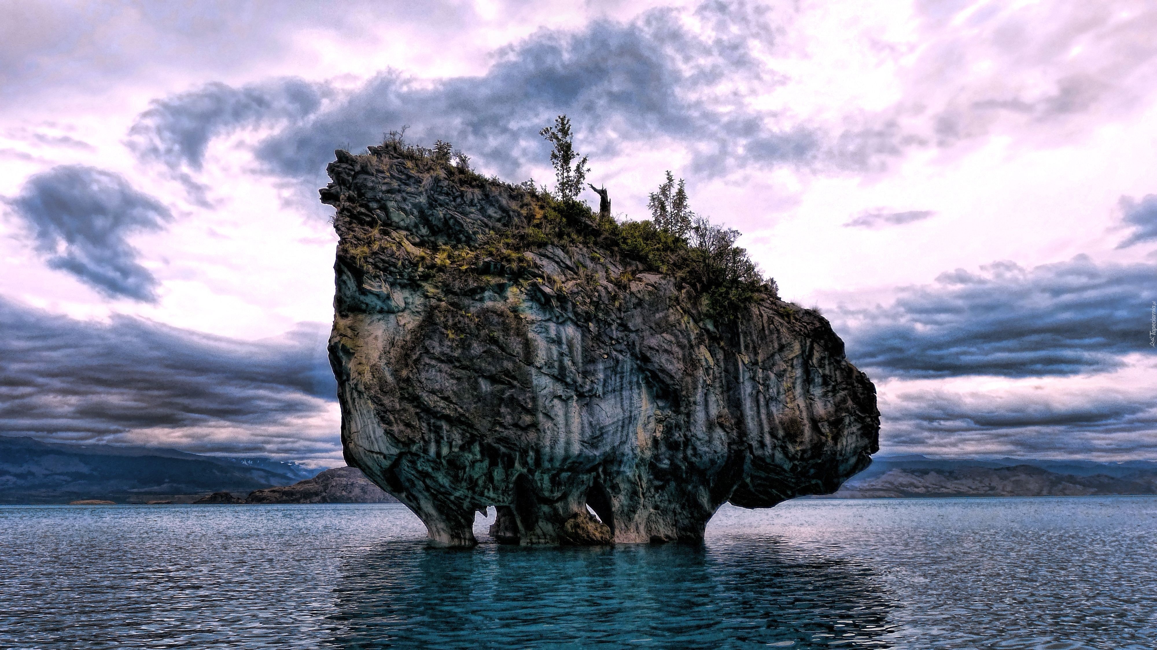 Edytor tapety: Jezioro, Wyspa, Skała, Drzewa