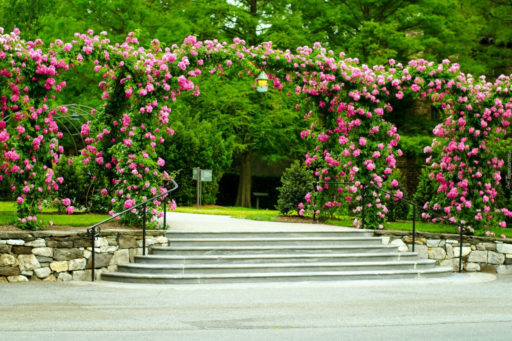 Edytor tapety: Różane, Wejście, Park, Schody, Drzewa, Lato