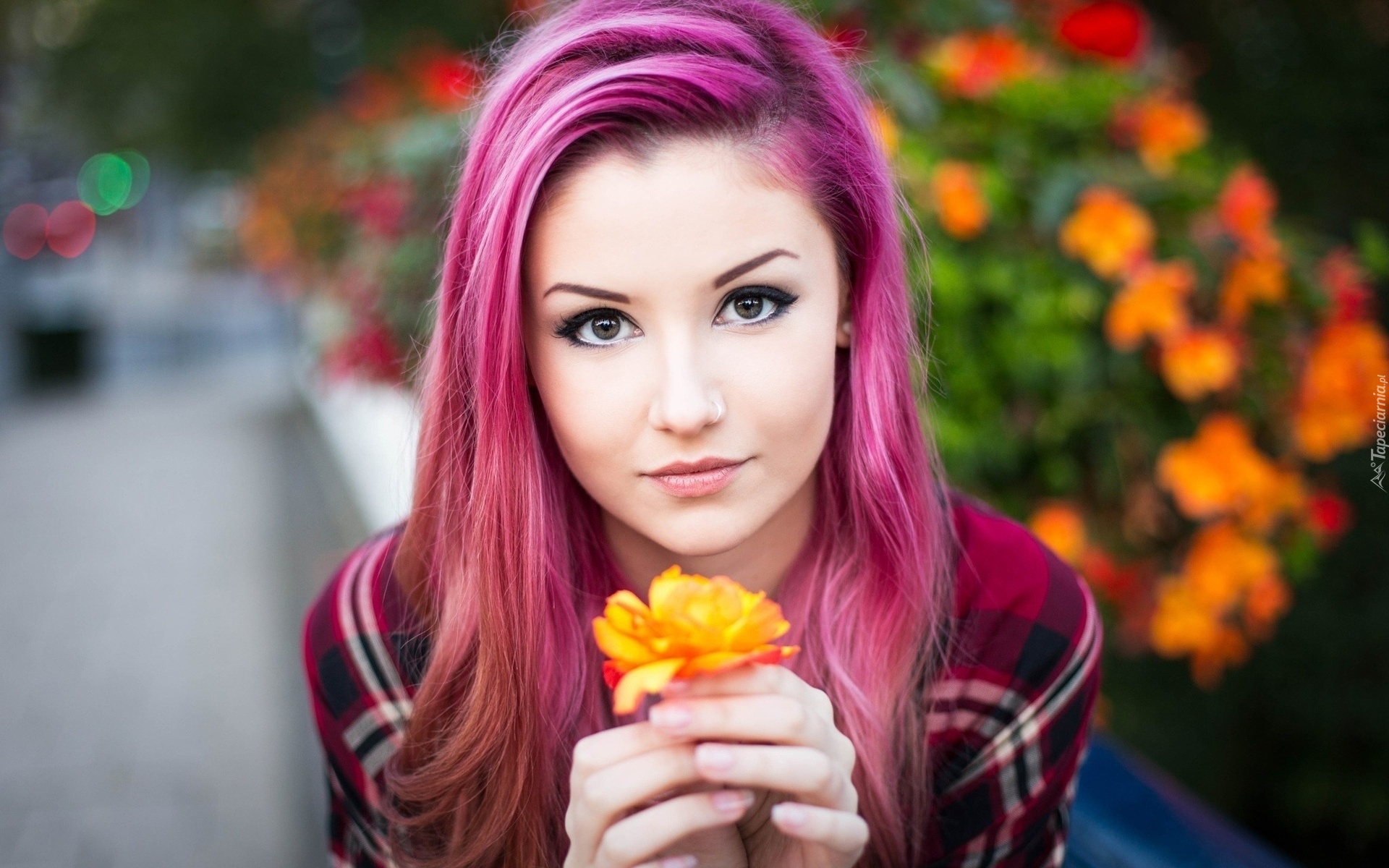 Edytor tapety: Różowe, Włosy, Dziewczyna, Makijaż