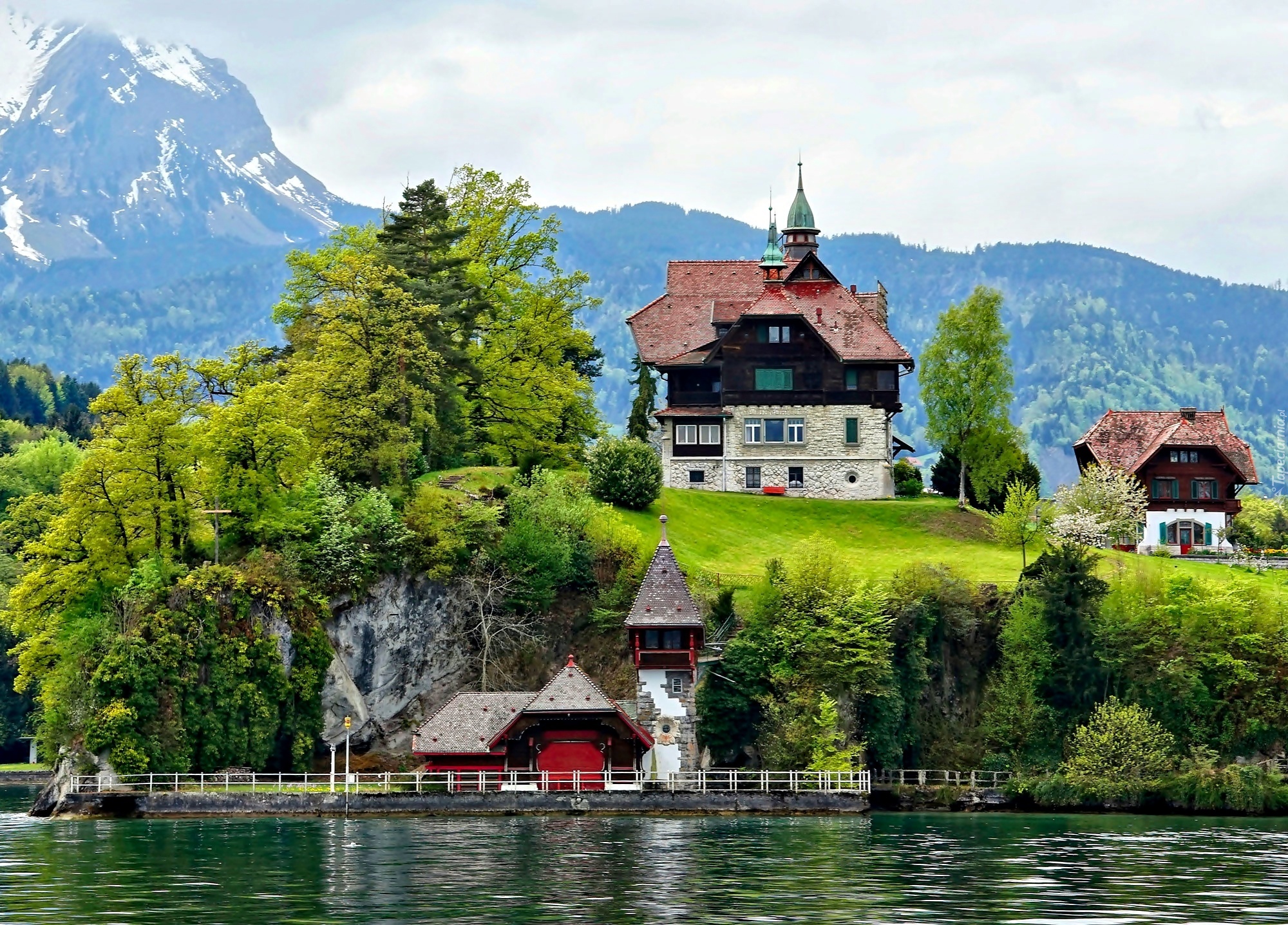 Edytor tapety: Domy, Góry, Jezioro