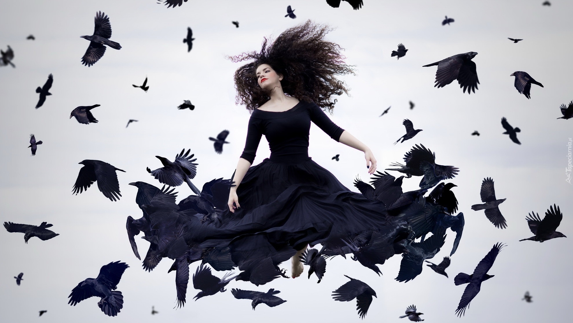 Edytor tapety: Kobieta, Czarna, Suknia, Kruki