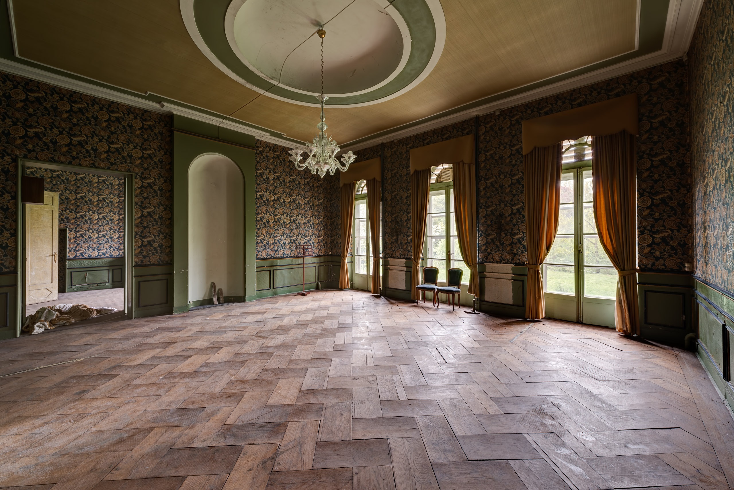 Edytor tapety: Zaniedbany, Opuszczony, Pokój, Zasłony, Żyrandol