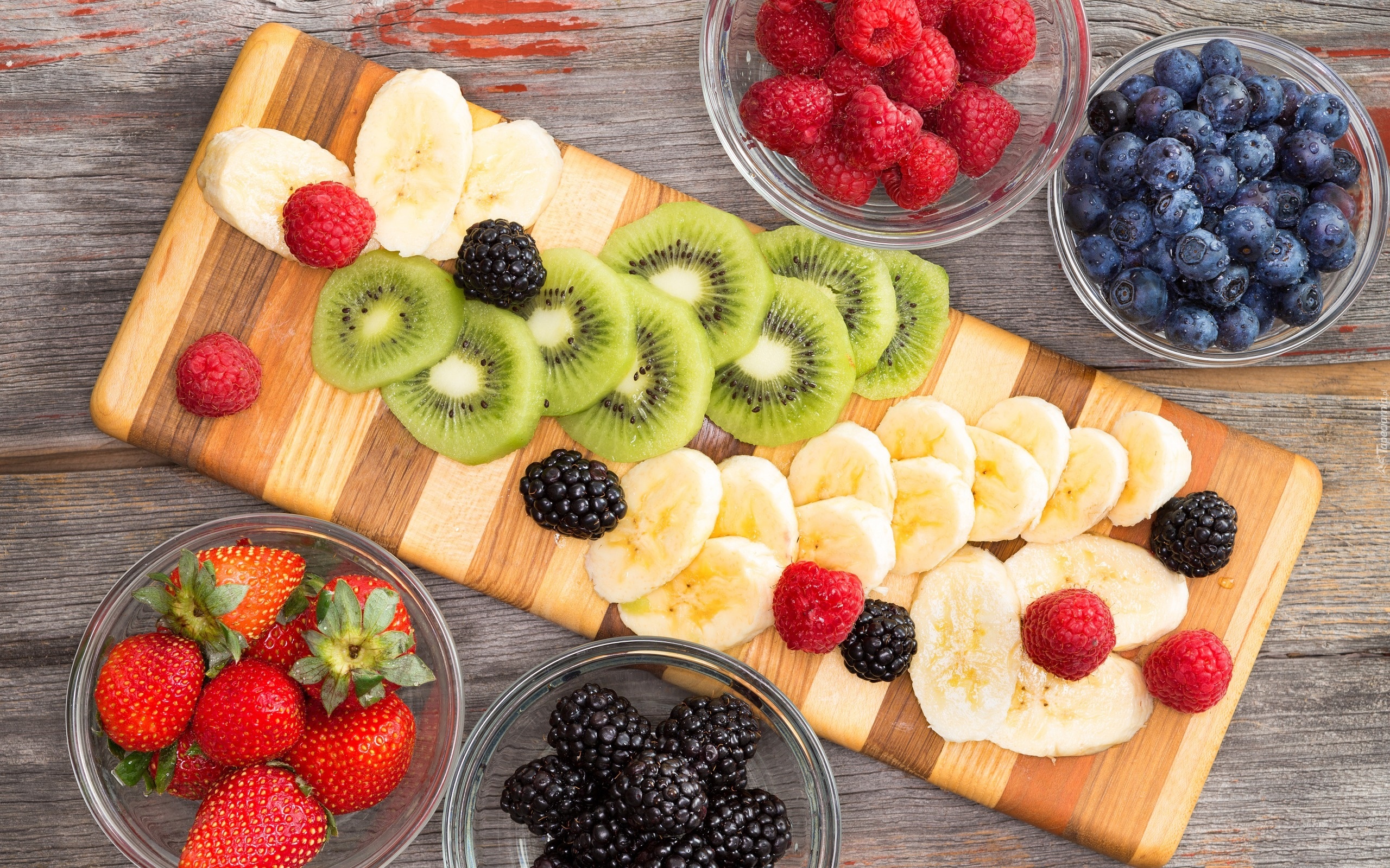 Edytor tapety: Kiwi, Truskawki, Banany, Maliny, Owoce