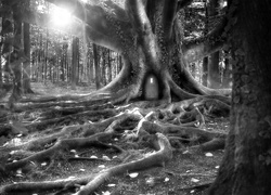 Edytor tapety: Las, Wschód Słońca, Baśniowe Drzewo