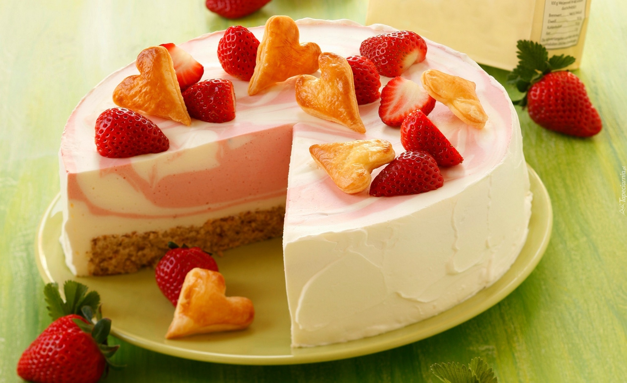 Edytor tapety: Tort, Śmietanowy, Truskawki, Ciastka, Serca