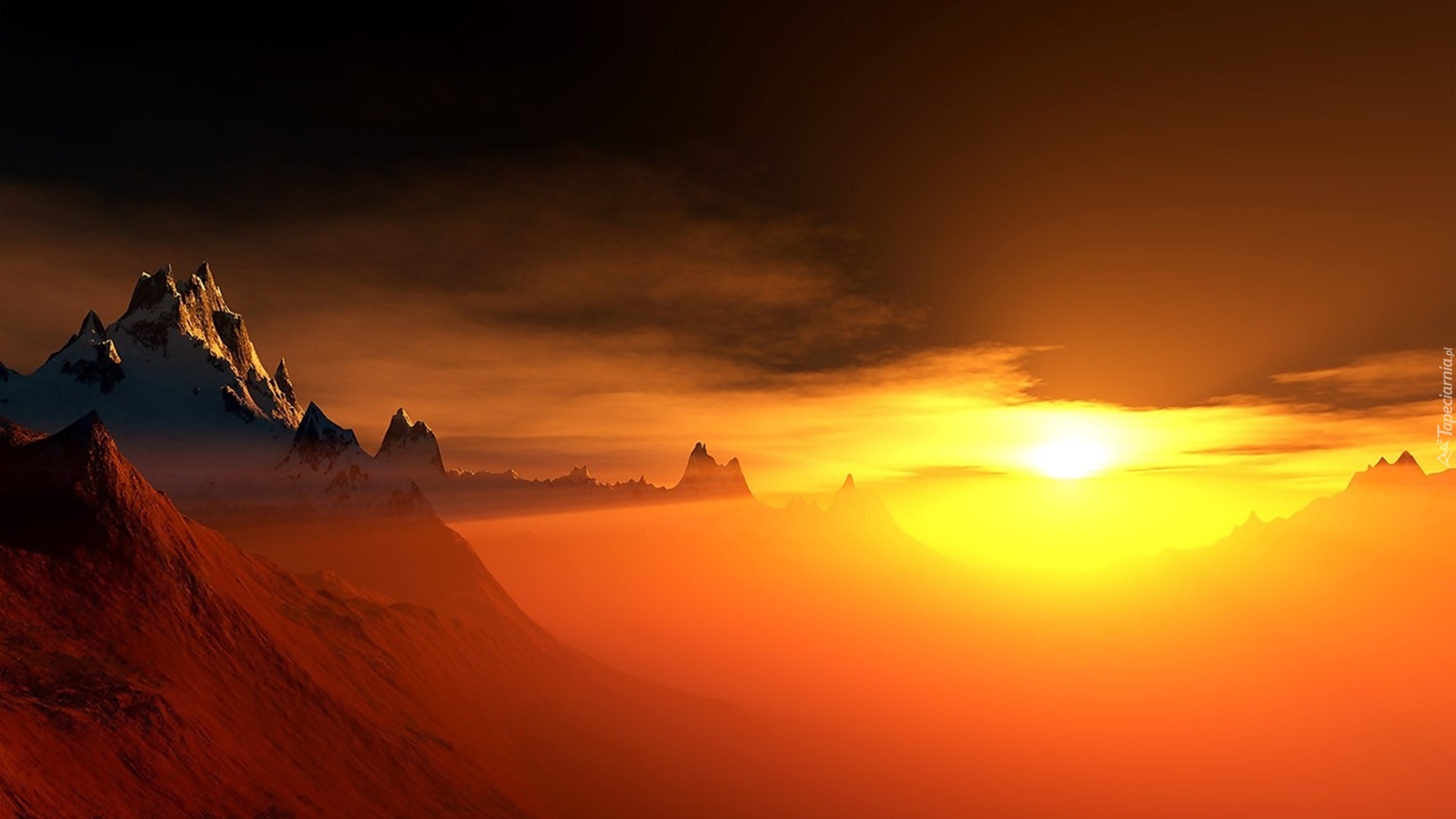 Edytor tapety: Szczyty, Górskie, Wschód, Słońca, Mgła