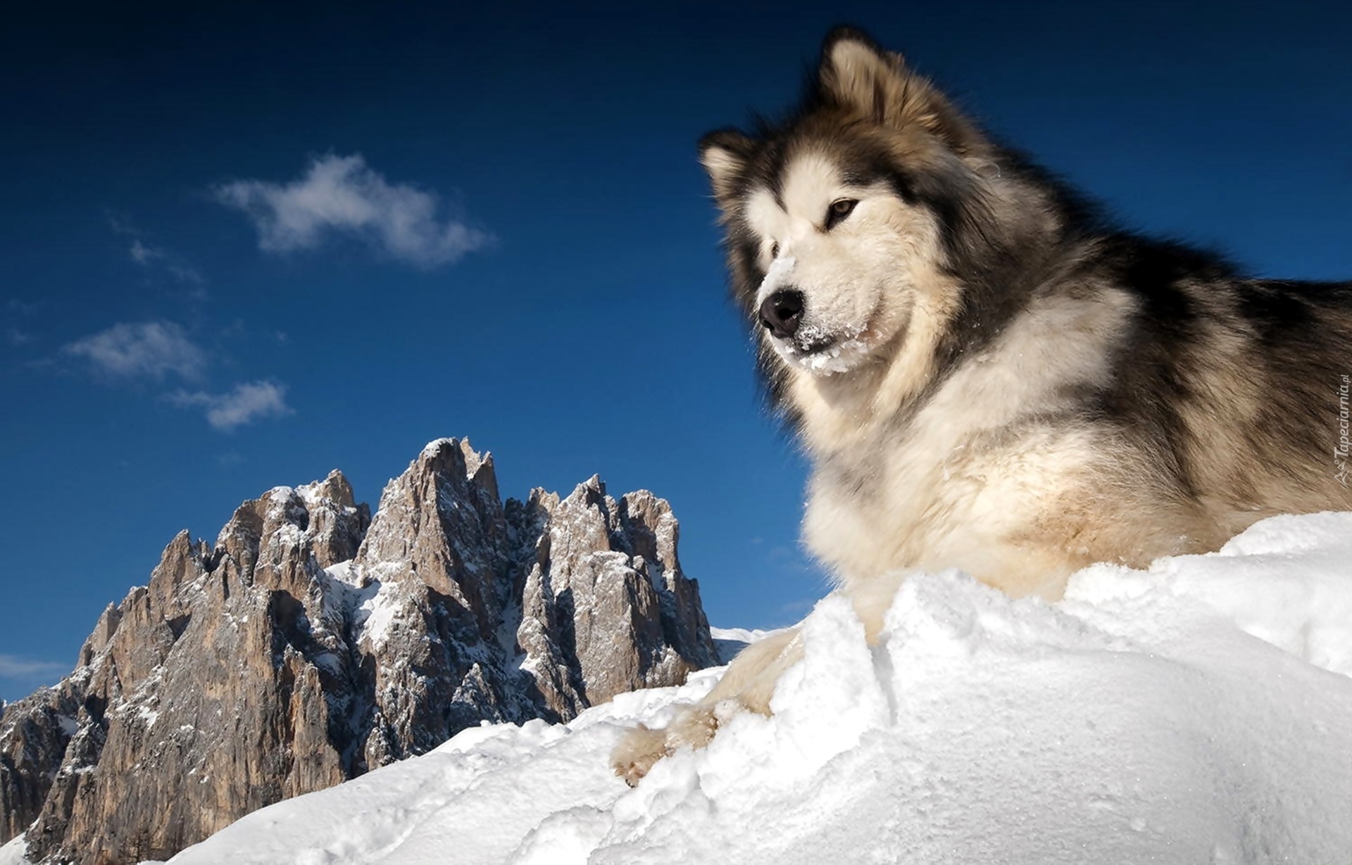 Edytor tapety: Siberian, Husky, Zima, Góry, Śnieg